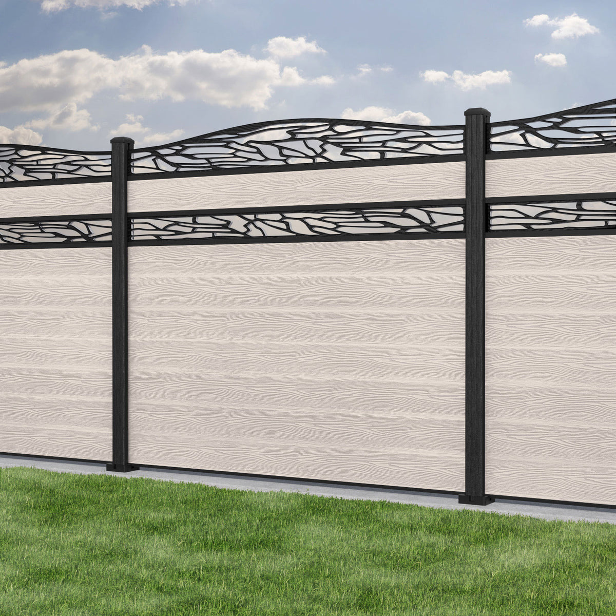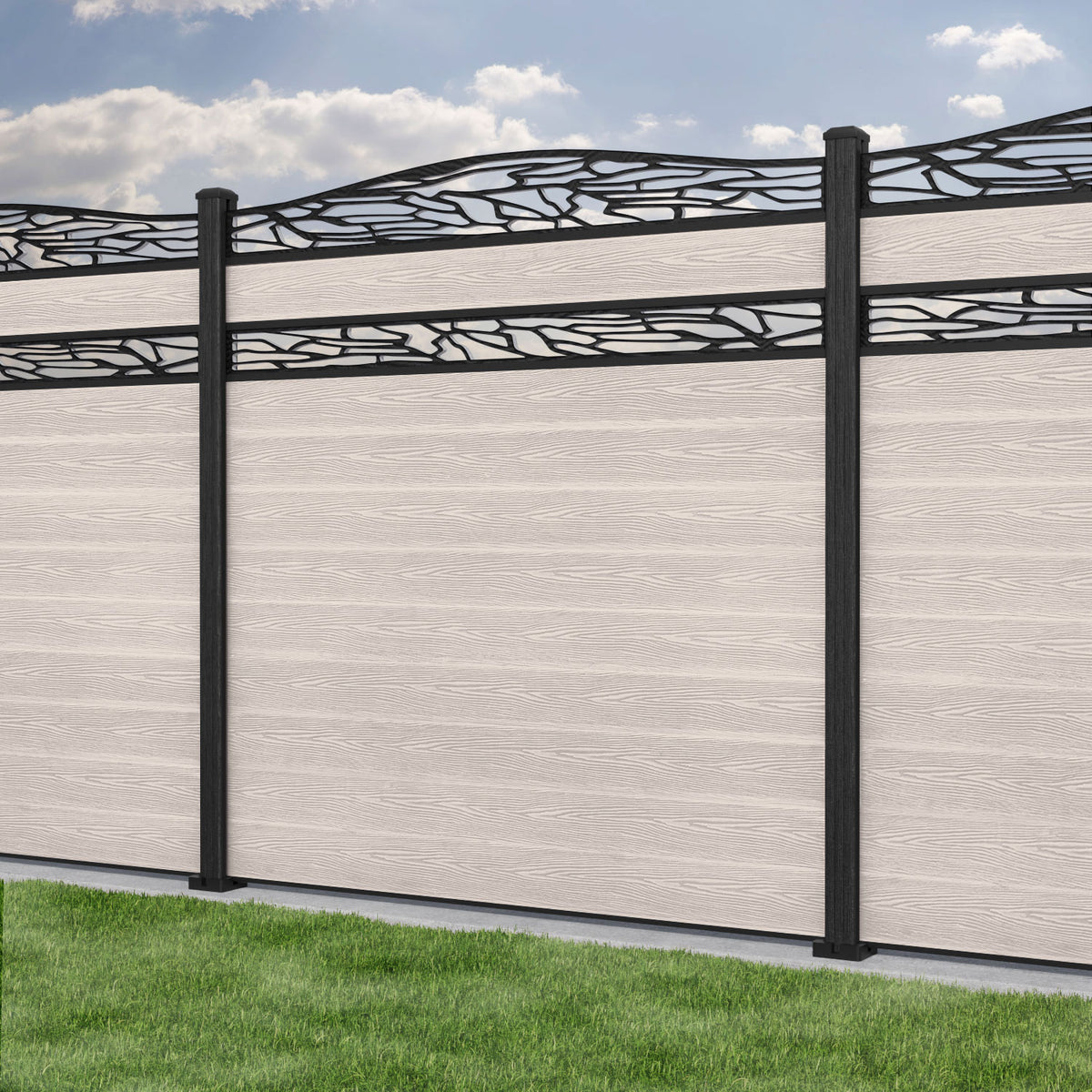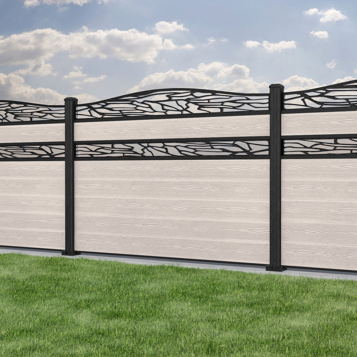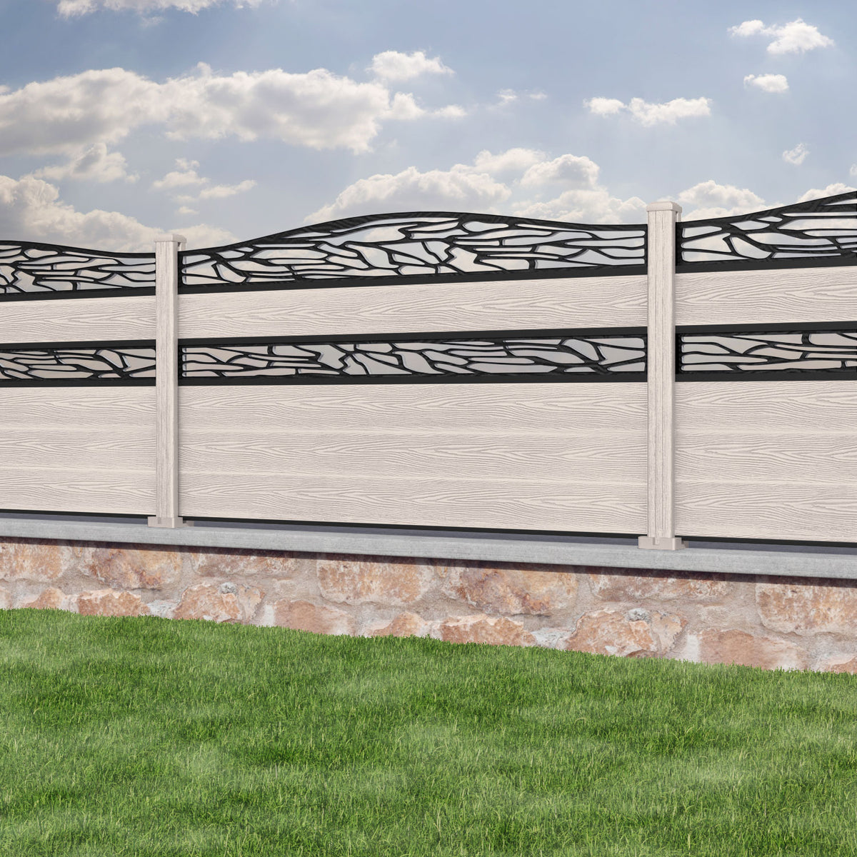 Classic Shatter Curved Top Split Screen Fence Panel Mid Stone - with our composite posts