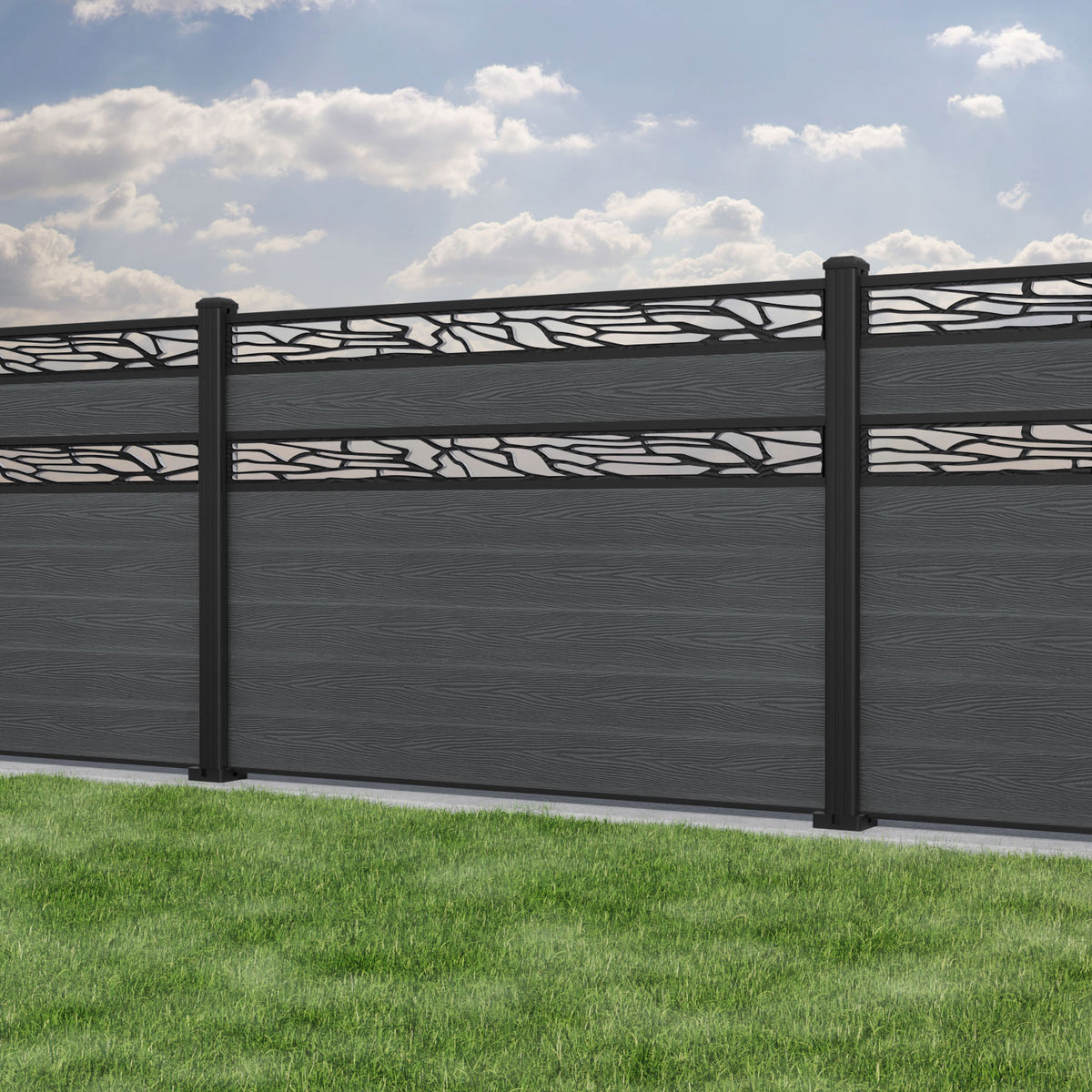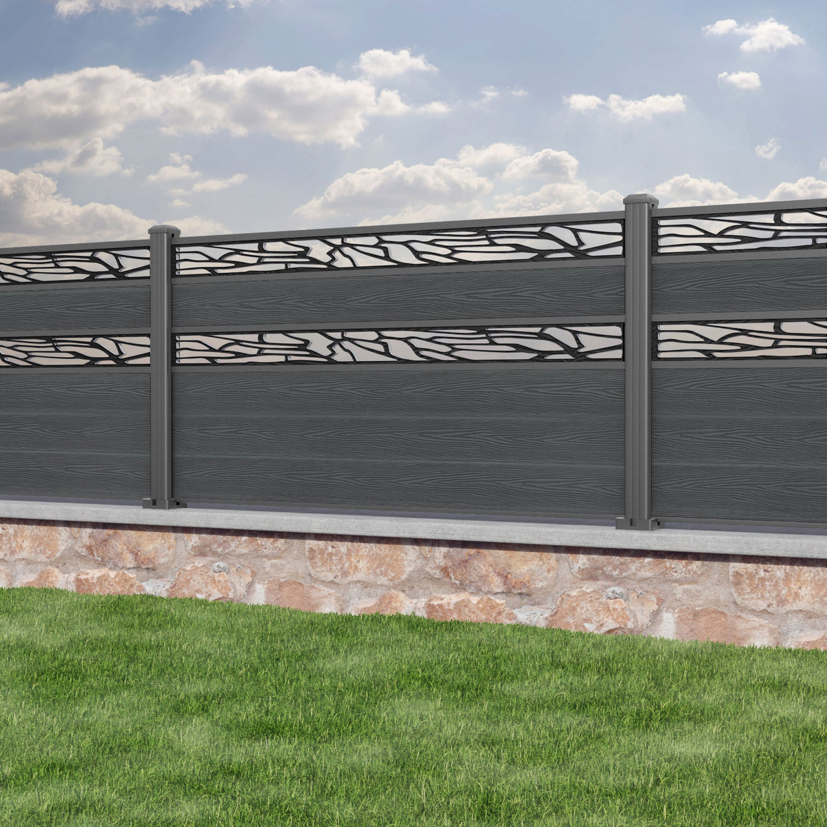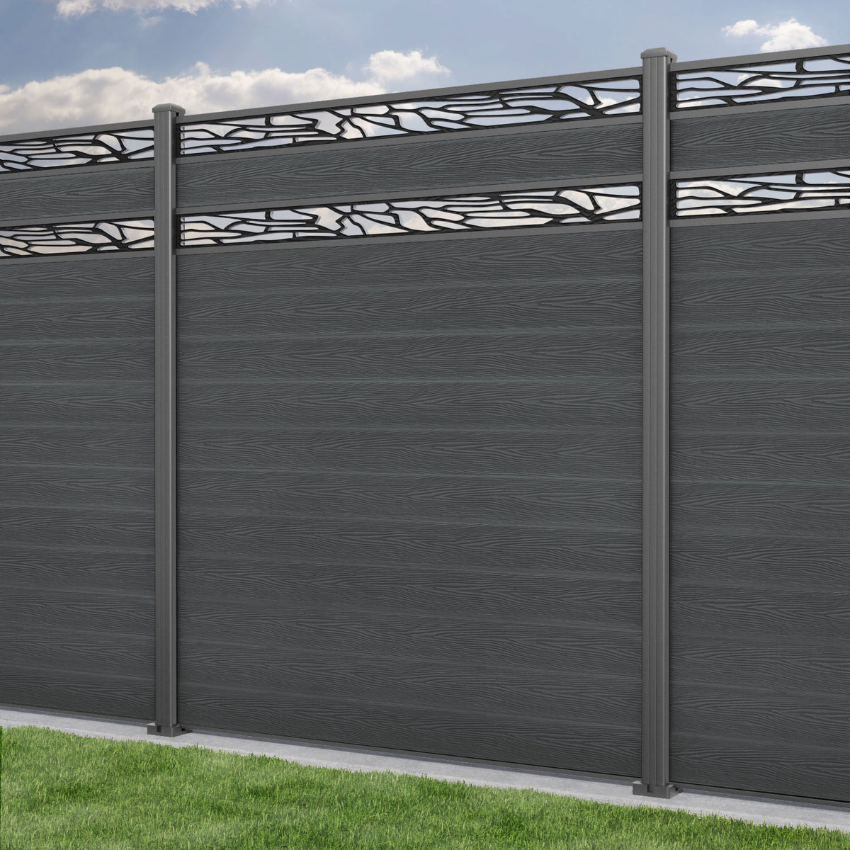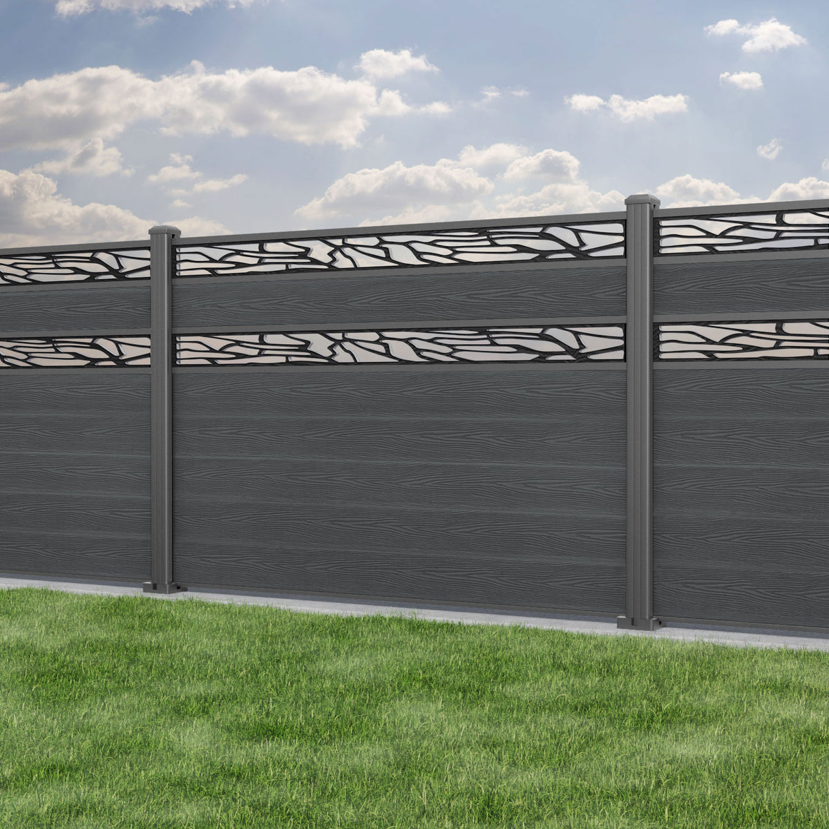 Classic Shatter Split Screen Fence Panel Dark Grey - with our aluminium posts