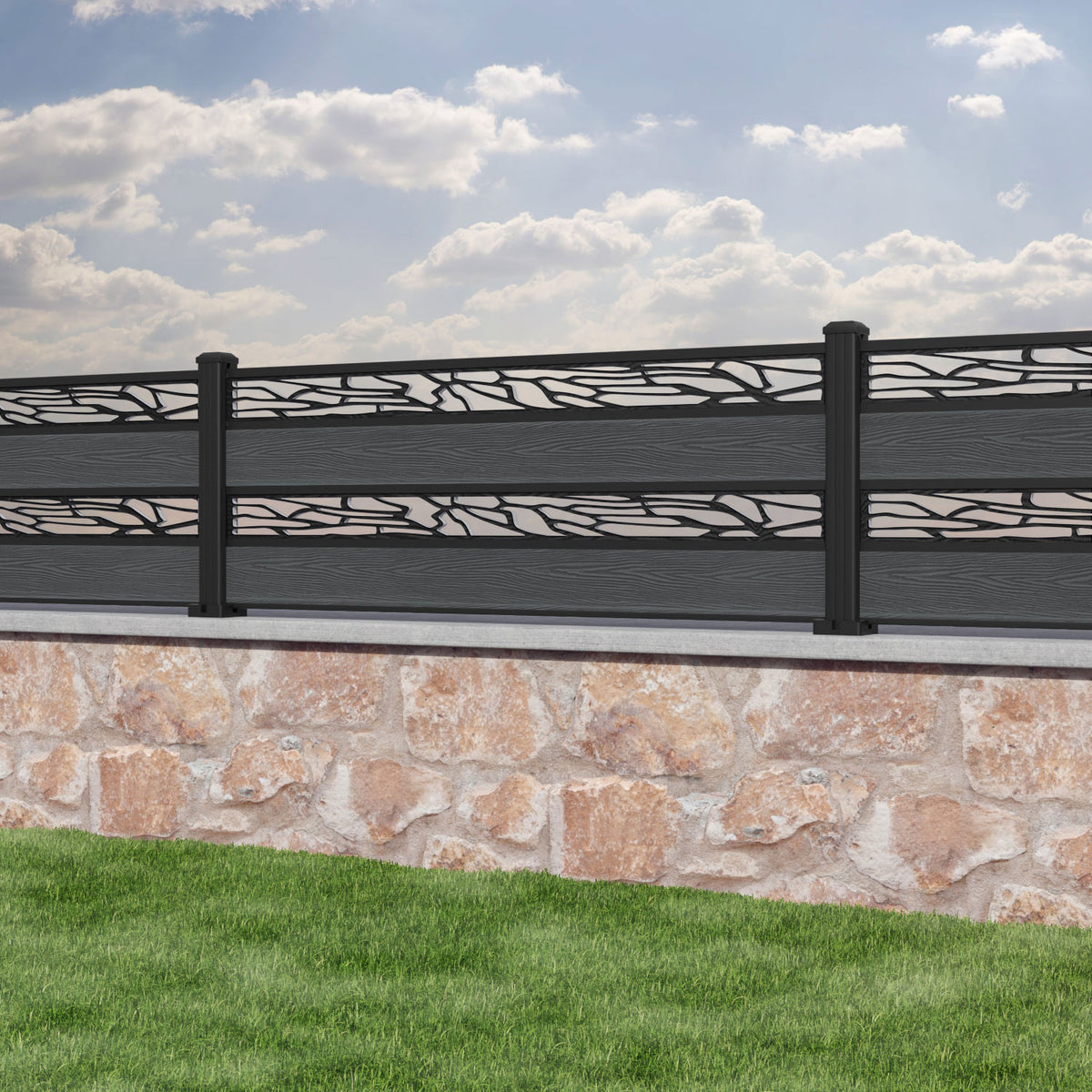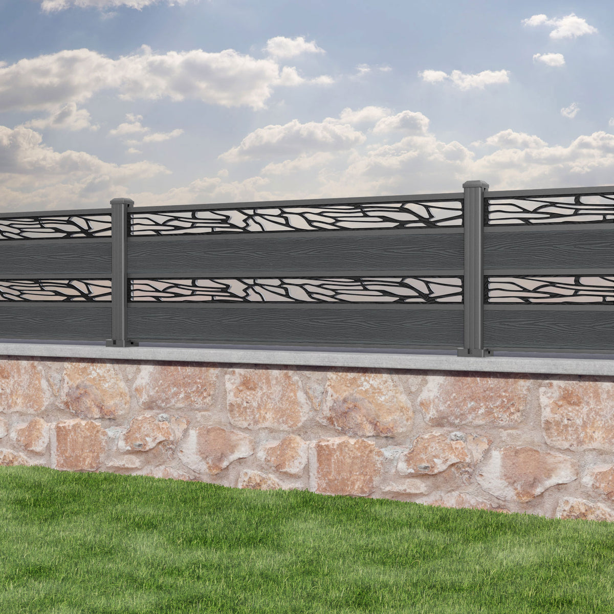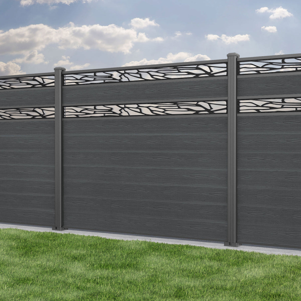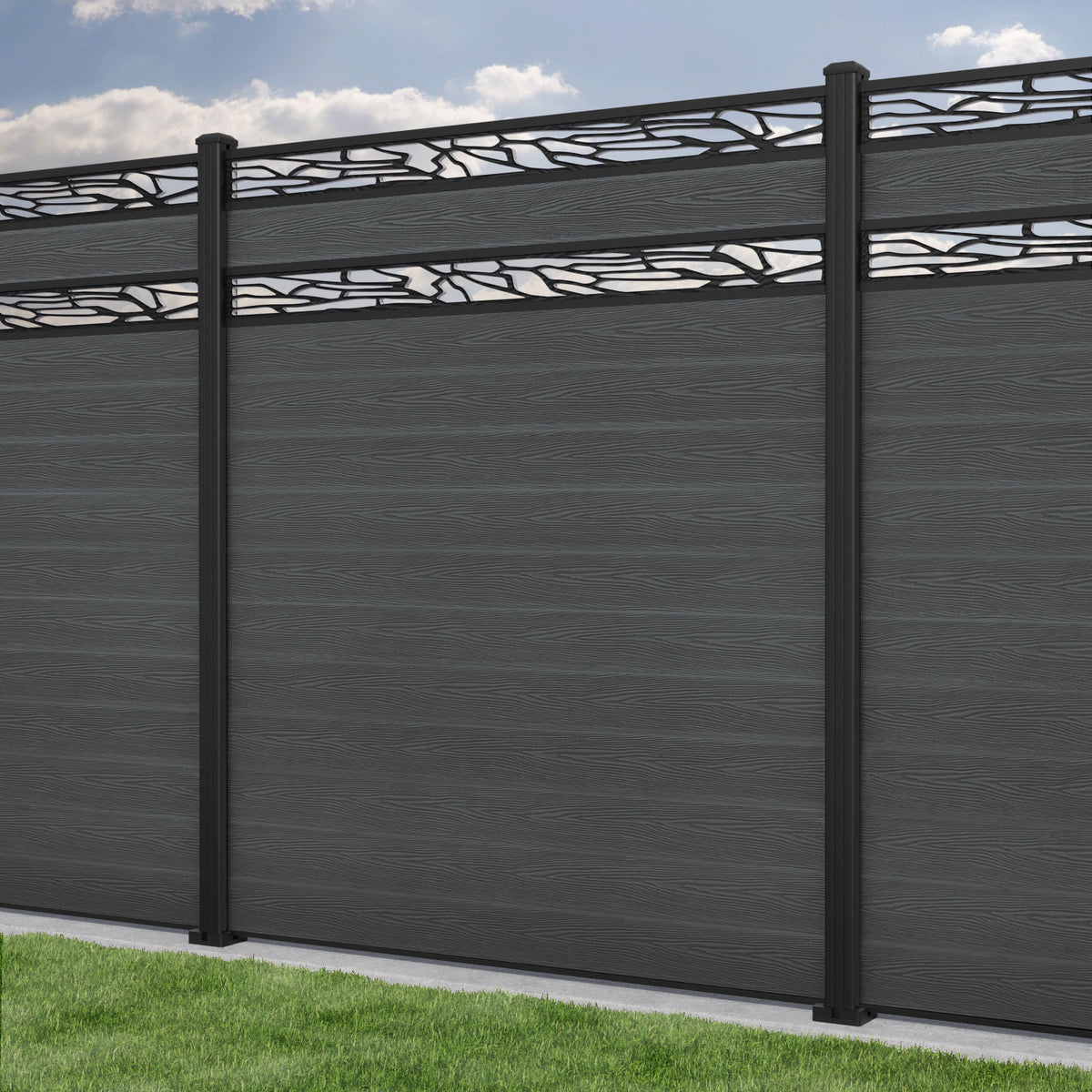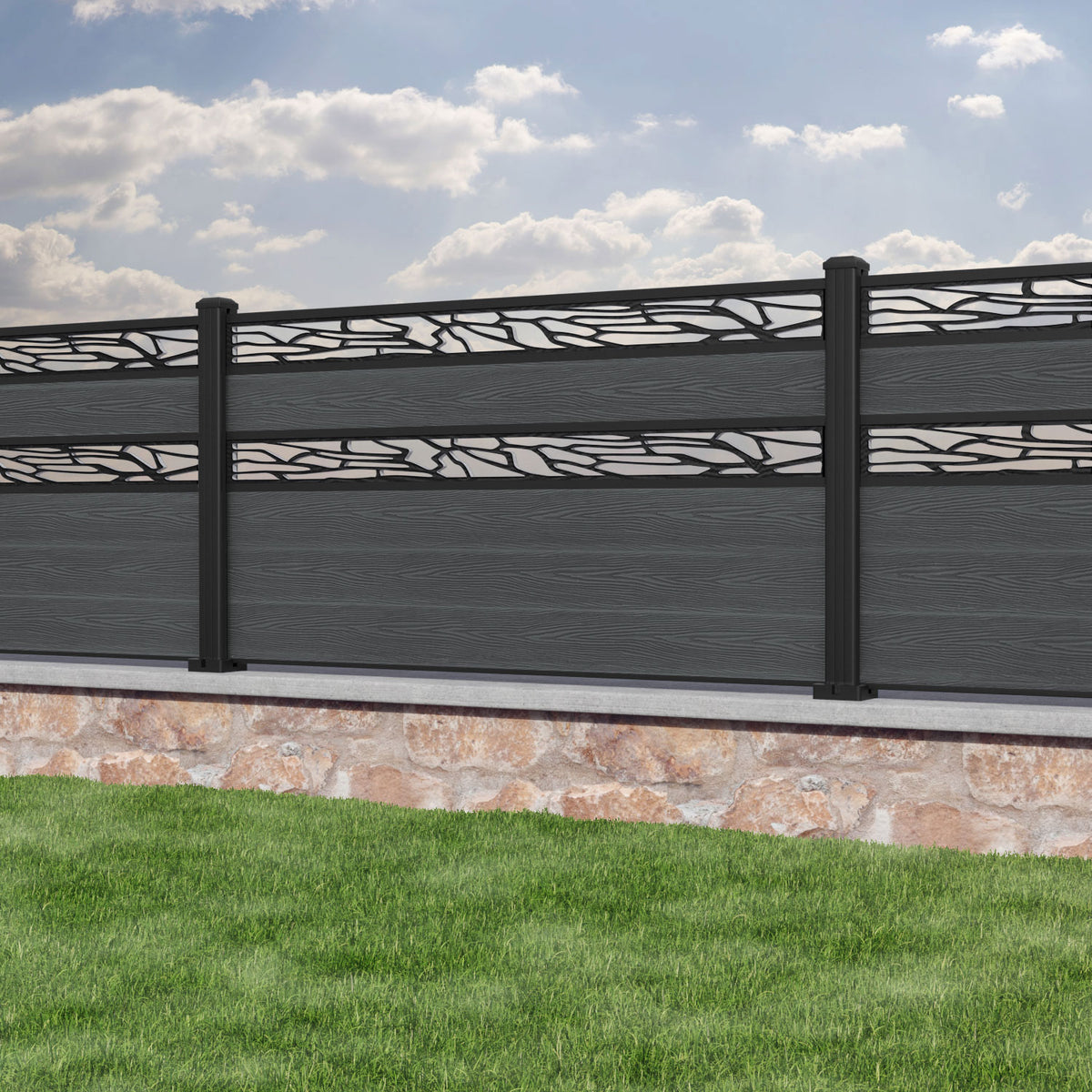 Classic Shatter Split Screen Fence Panel Dark Grey - with our aluminium posts