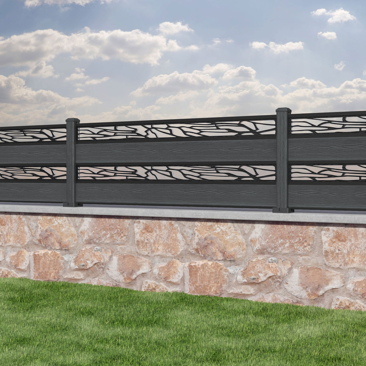 Classic Shatter Split Screen Fence Panel Dark Grey - with our composite posts