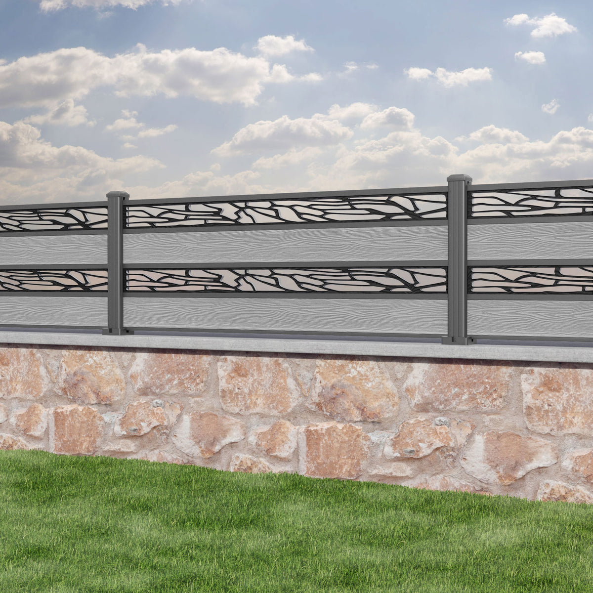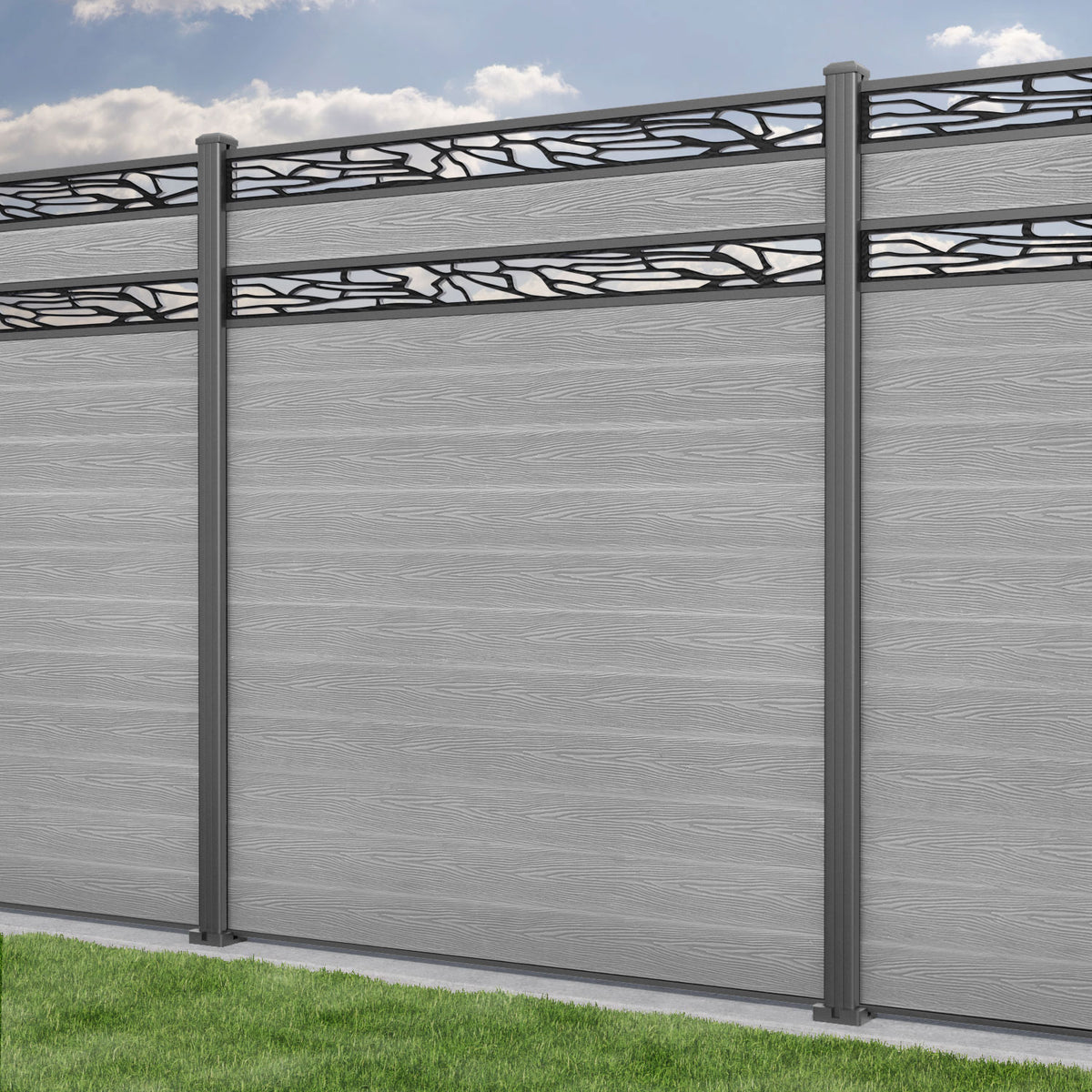 Classic Shatter Split Screen Fence Panel Light Grey - with our aluminium posts