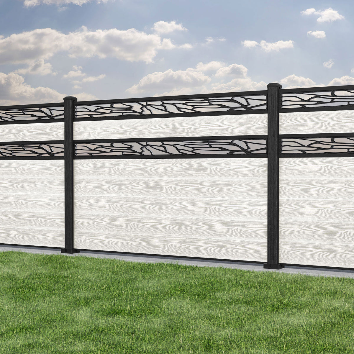 Classic Shatter Split Screen Fence Panel Light Stone - with our composite posts