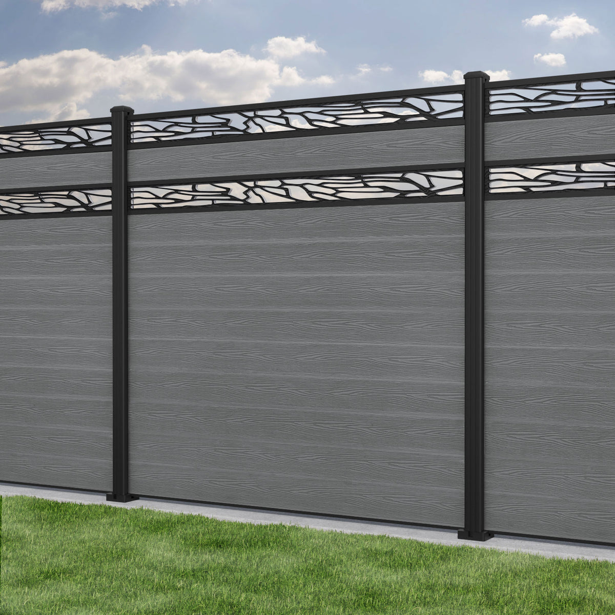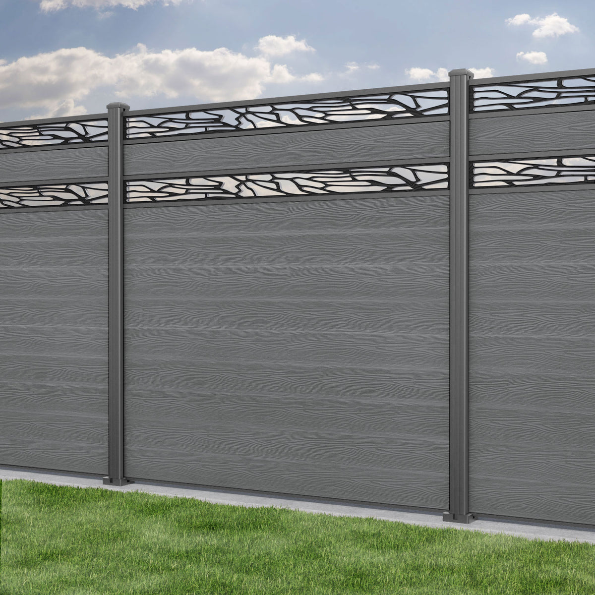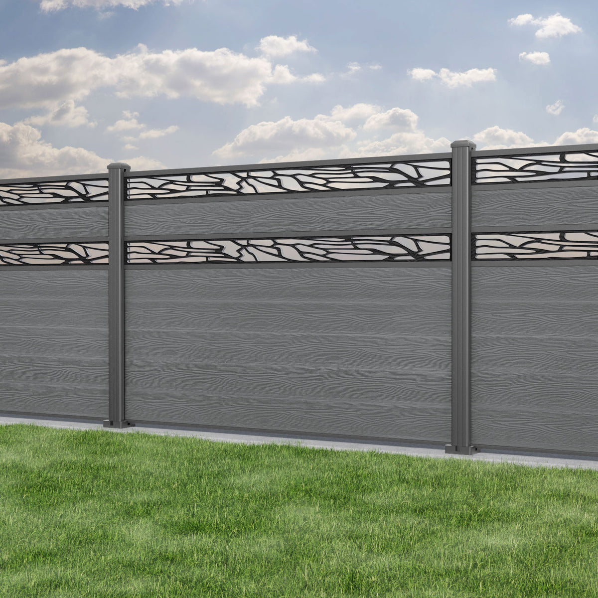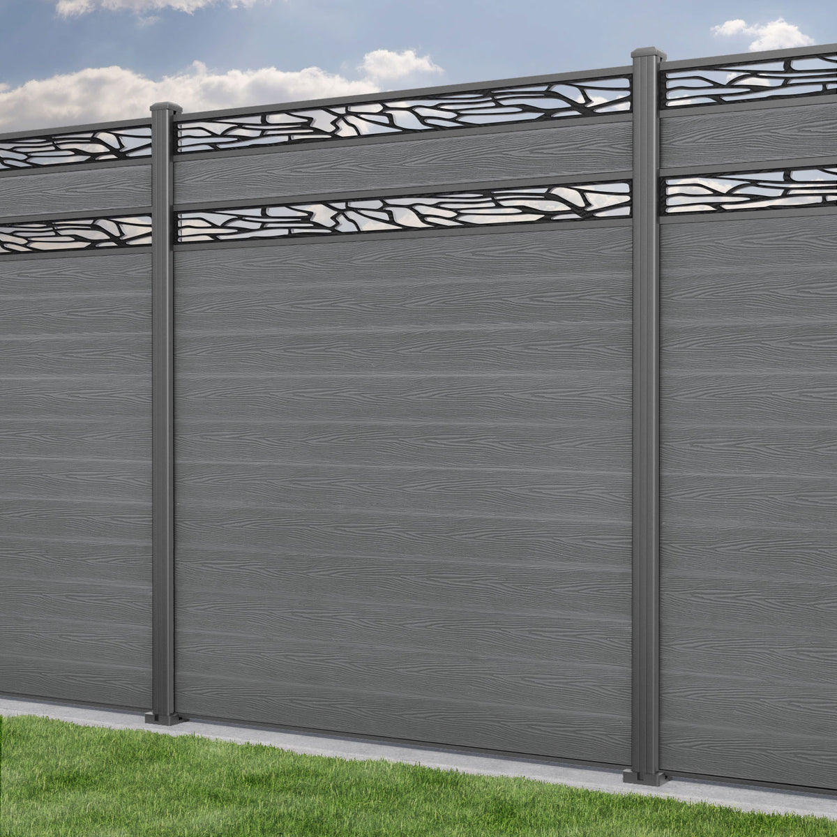 Classic Shatter Split Screen Fence Panel Mid Grey - with our aluminium posts