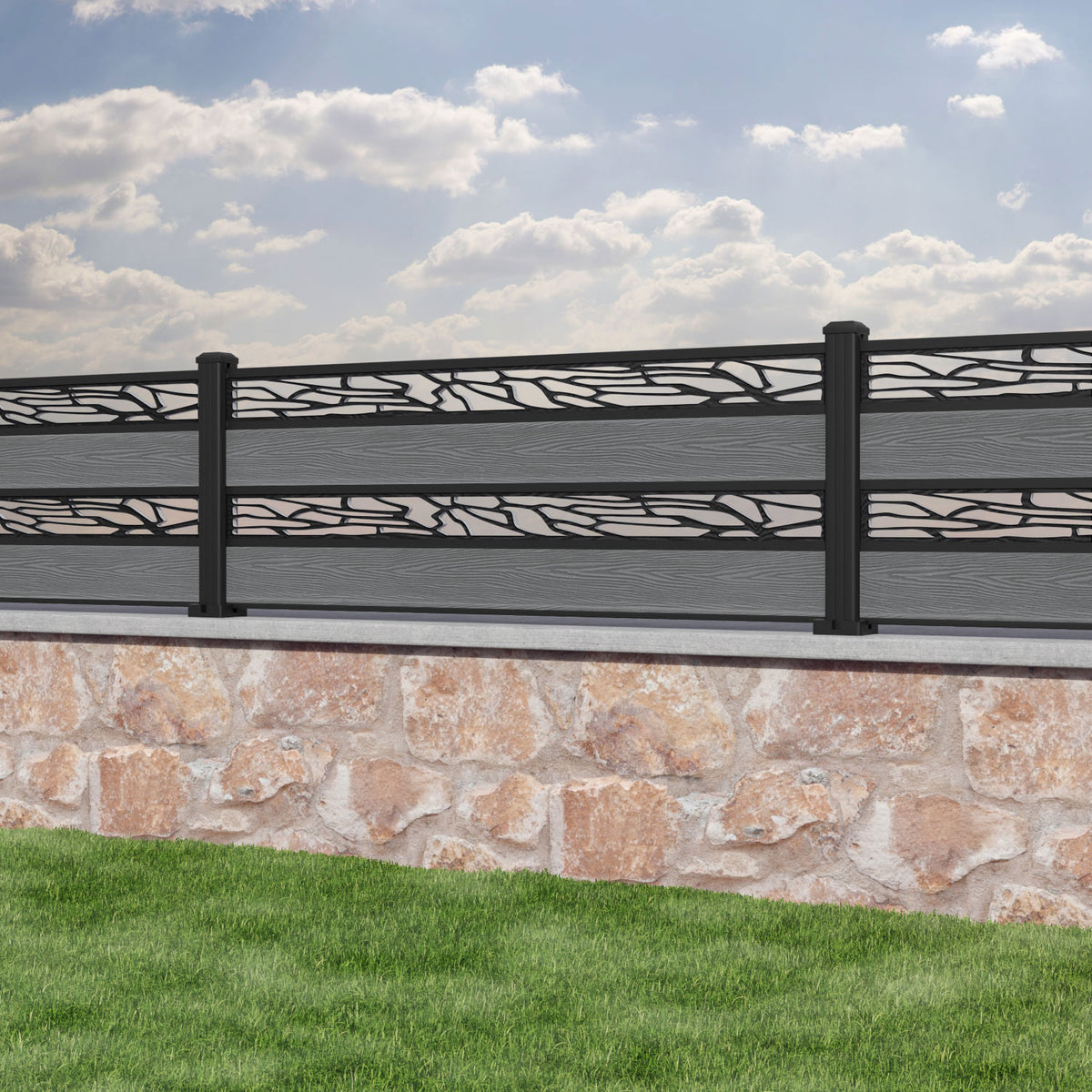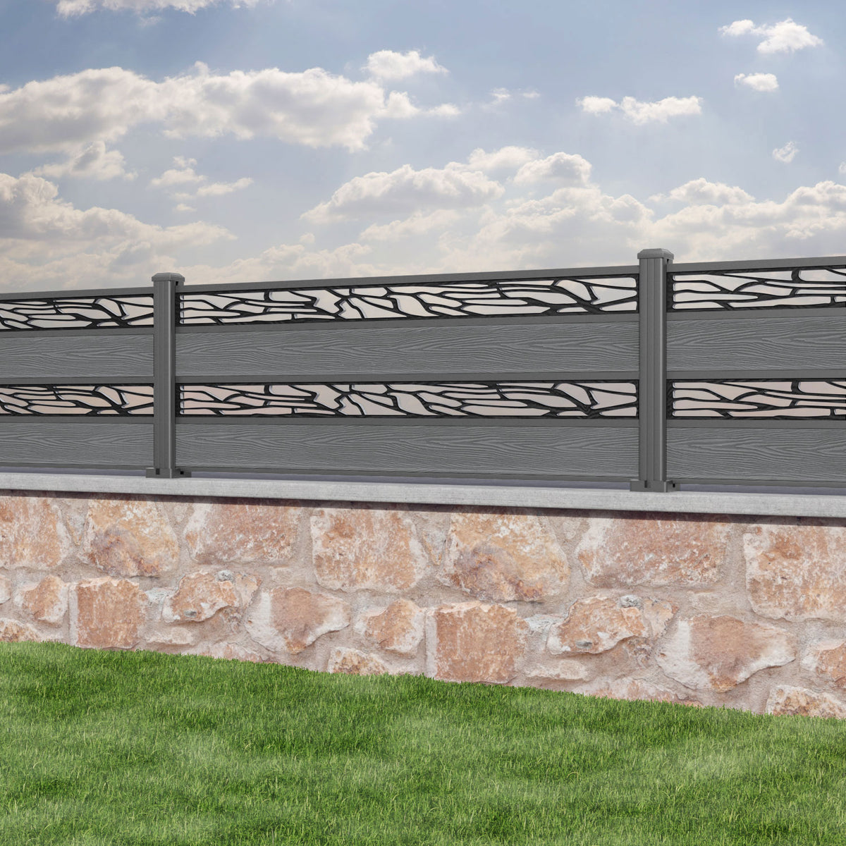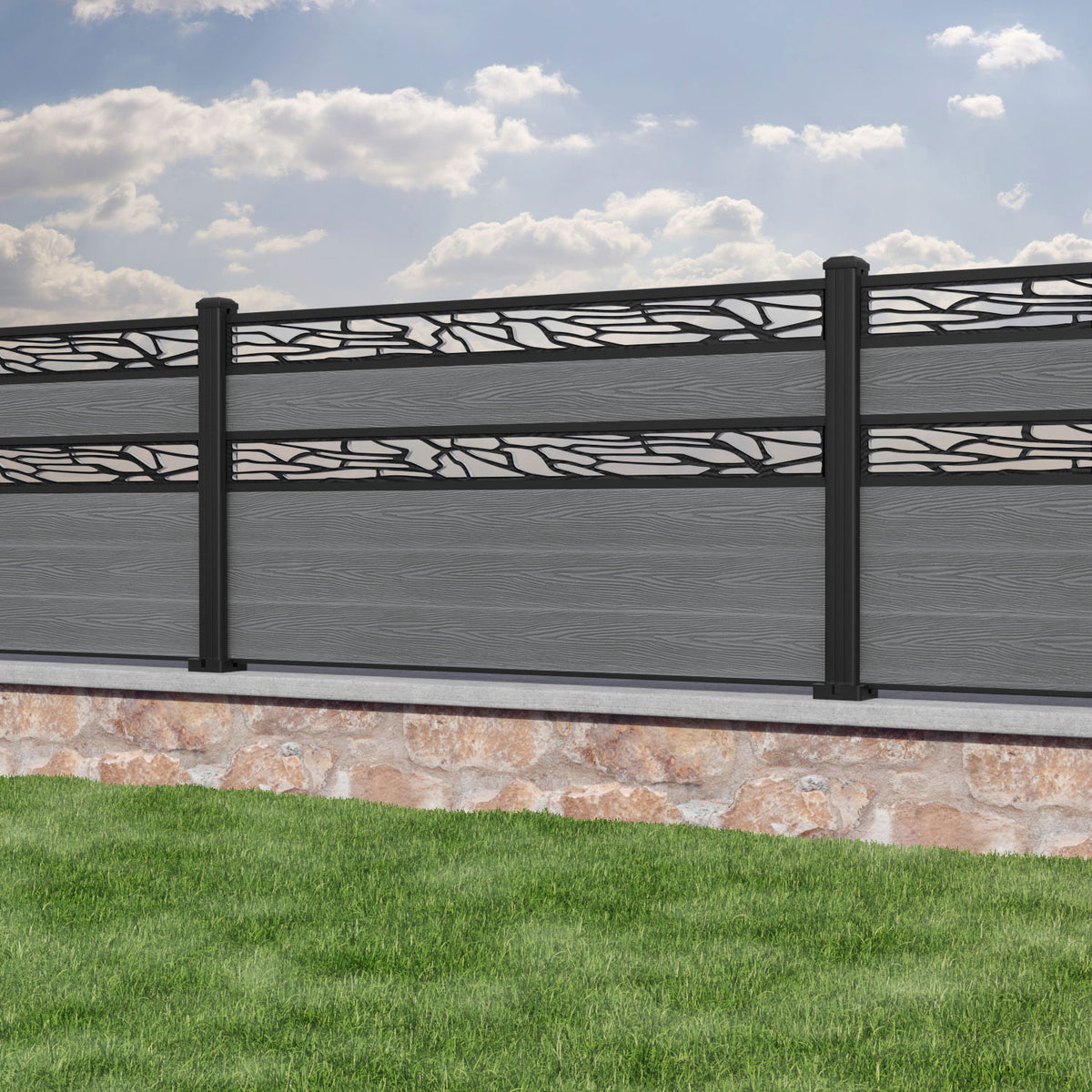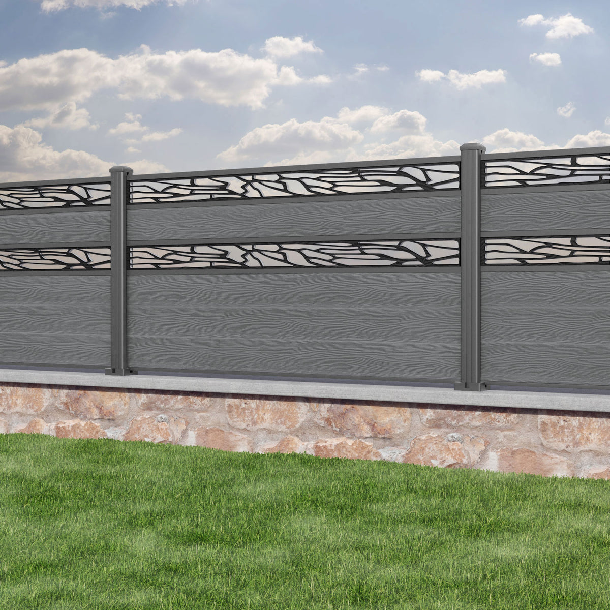 Classic Shatter Split Screen Fence Panel Mid Grey - with our aluminium posts