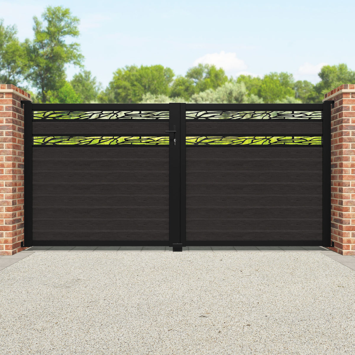 Classic Shatter Split Screen Straight Top Driveway Gate Dark Oak - Top Screen