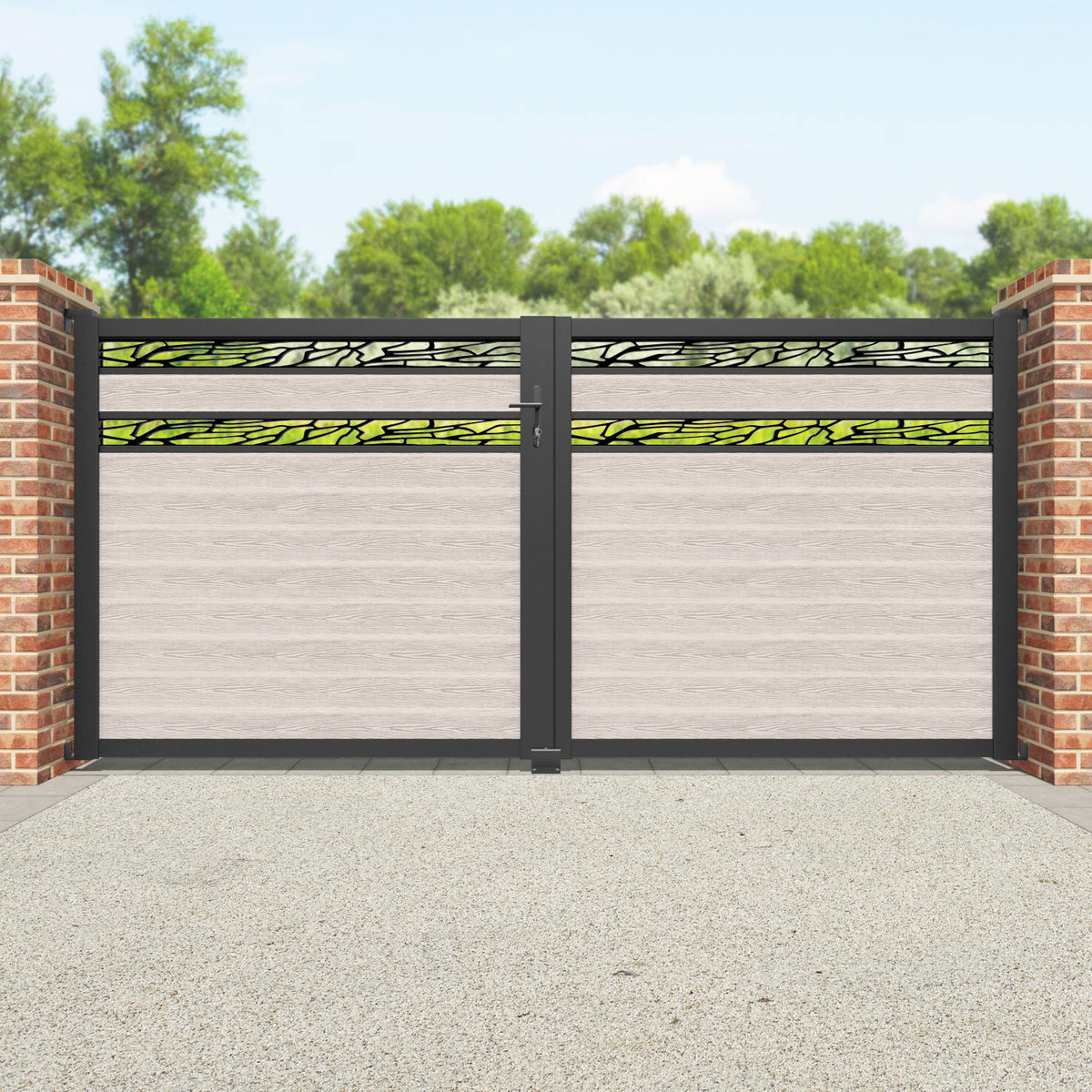 Classic Shatter Split Screen Straight Top Driveway Gate Mid Stone - Top Screen