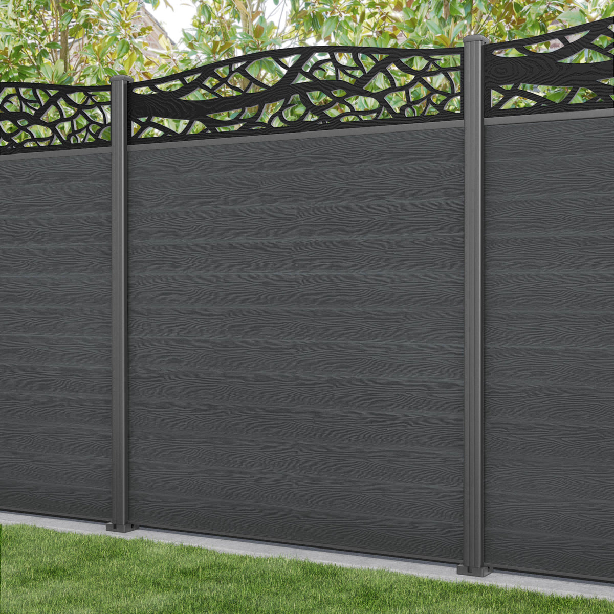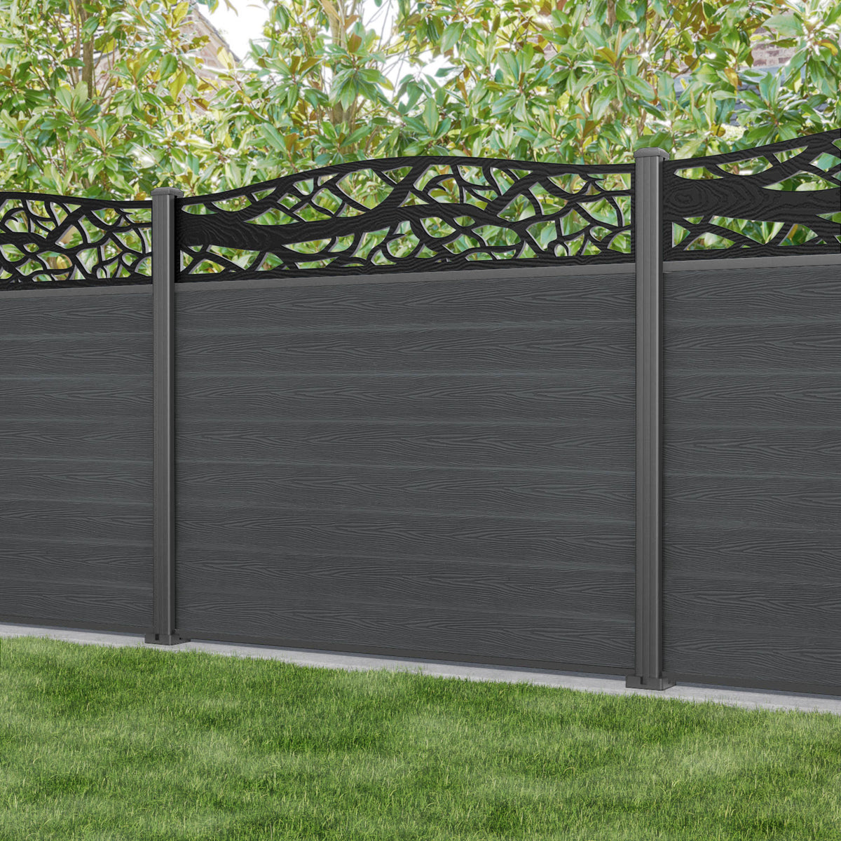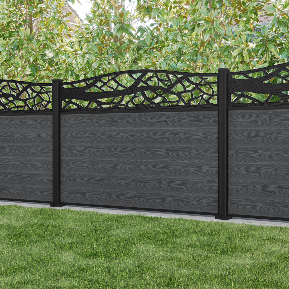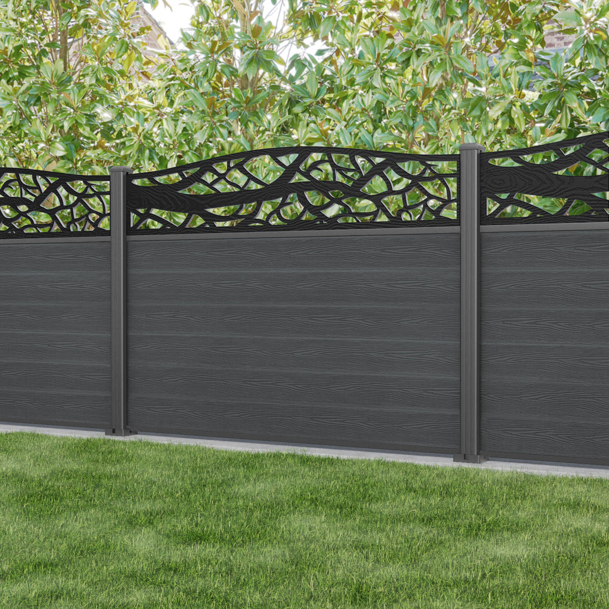 Classic Twilight Curved Top Fence Panel Dark Grey - with our aluminium posts