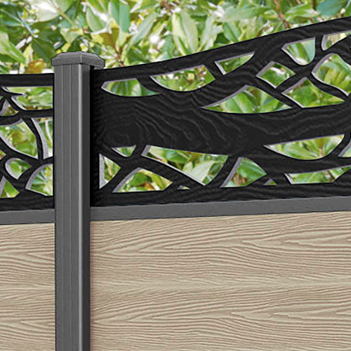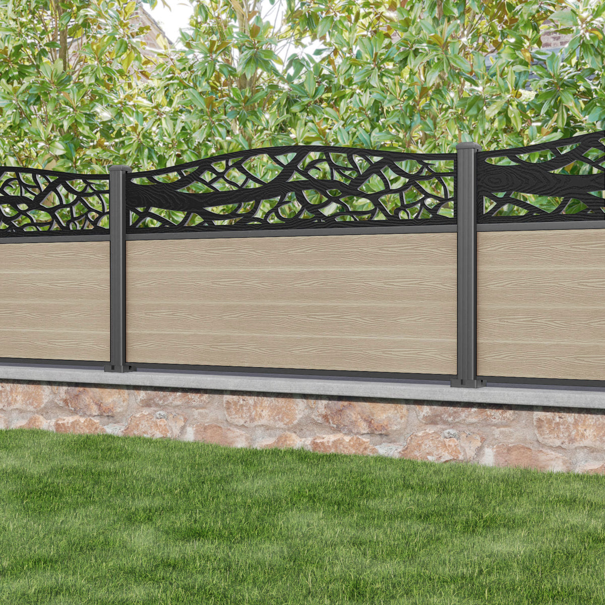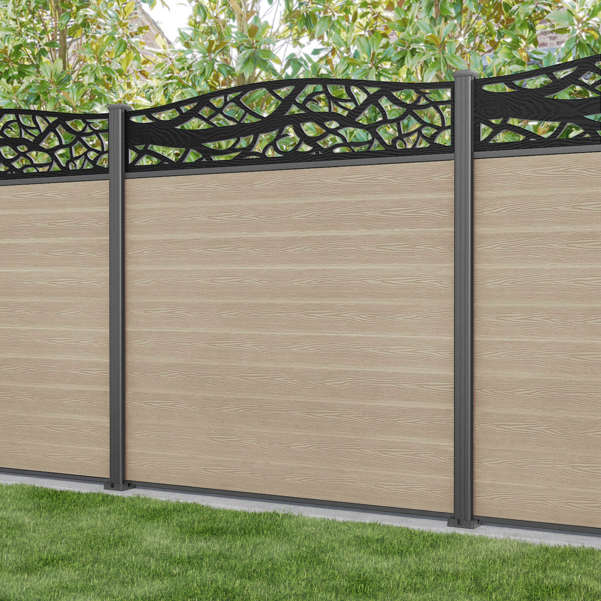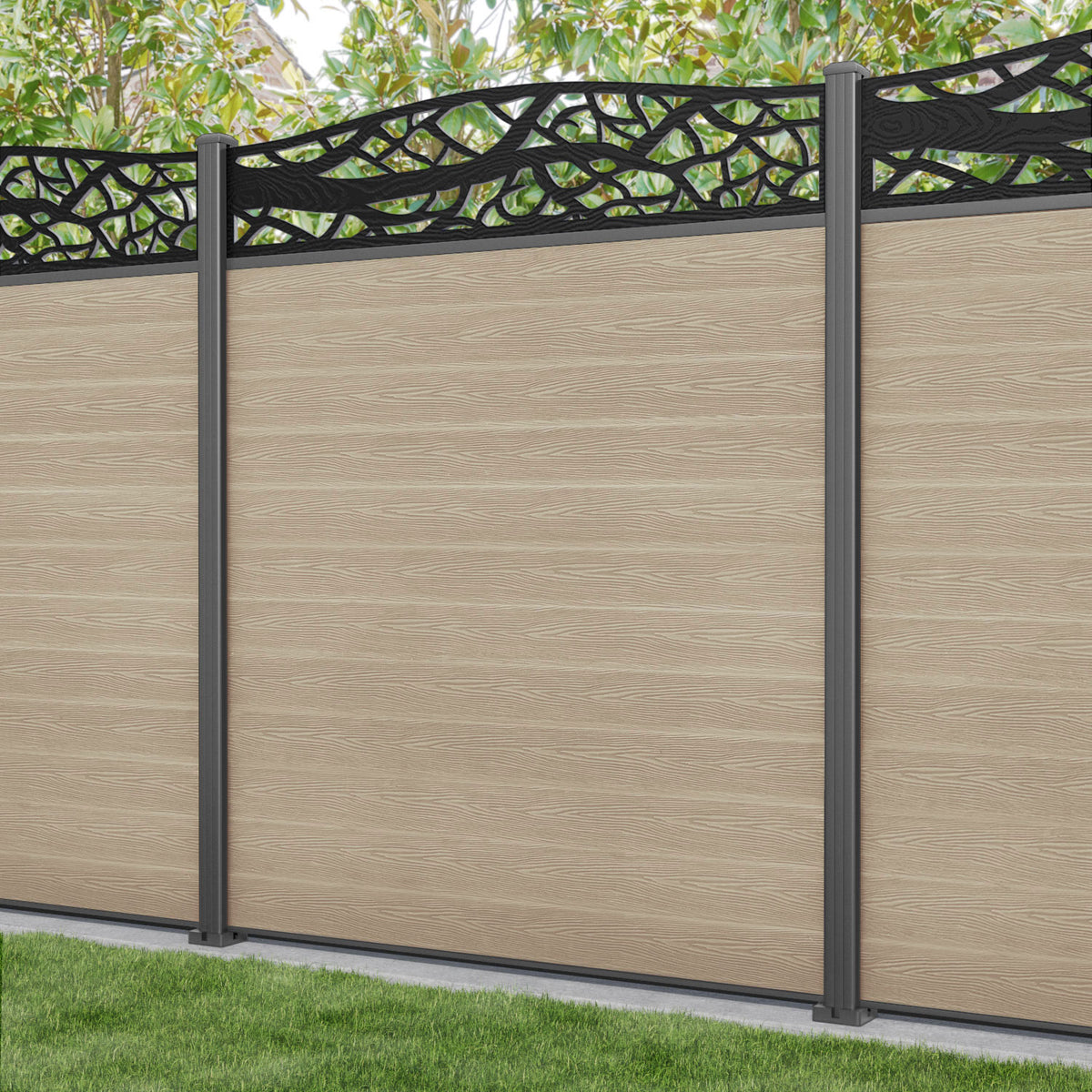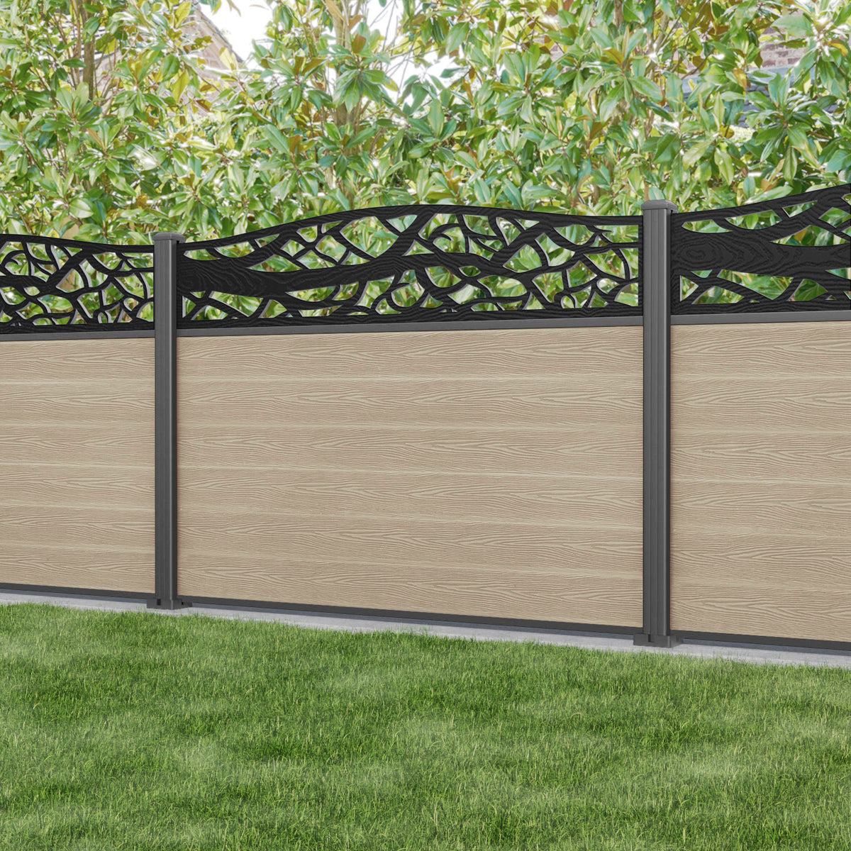 Classic Twilight Curved Top Fence Panel Light Oak - with our aluminium posts
