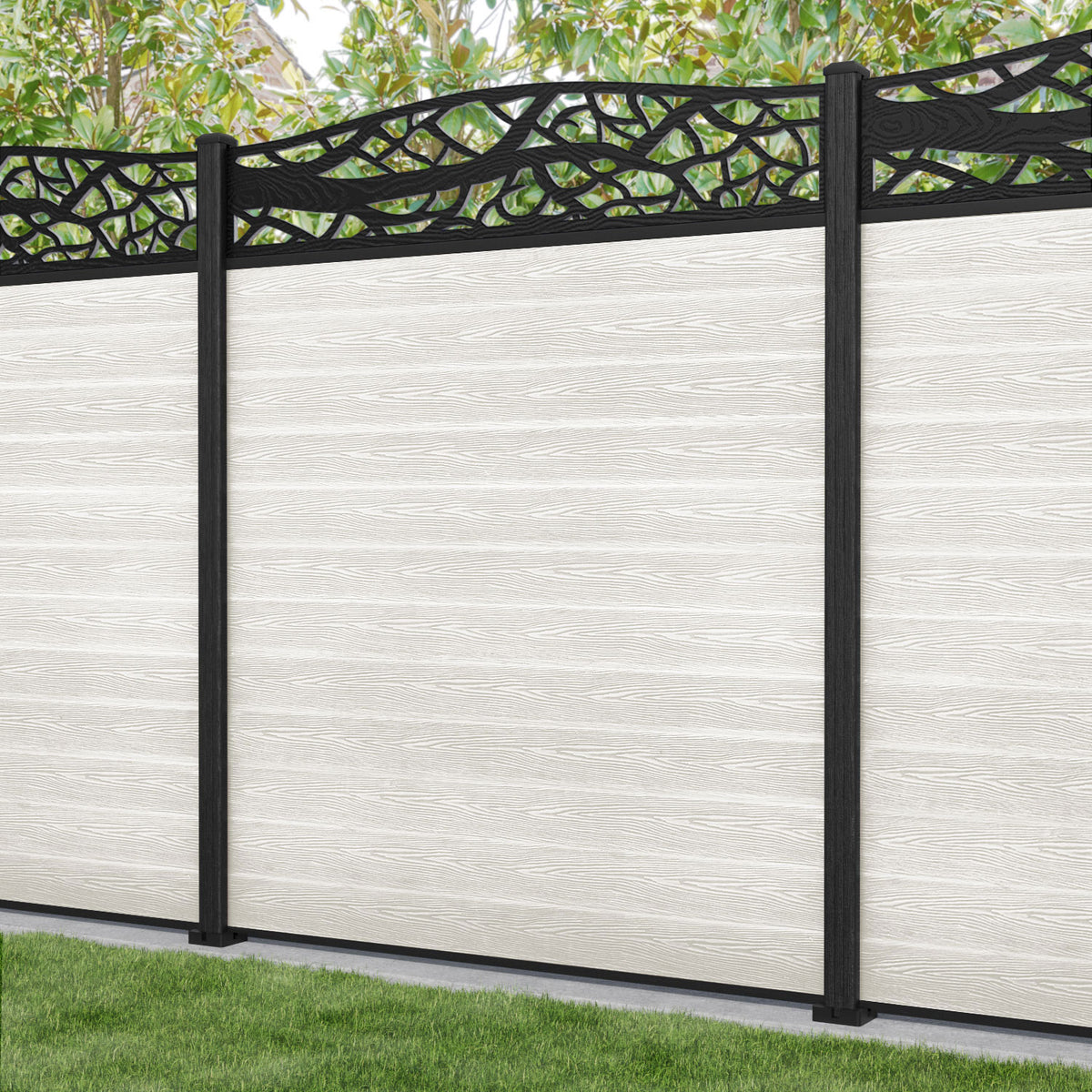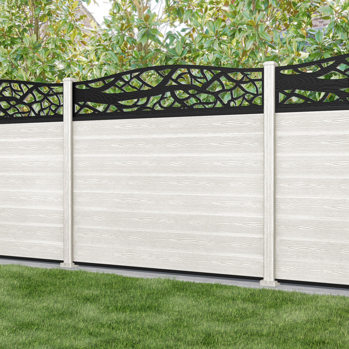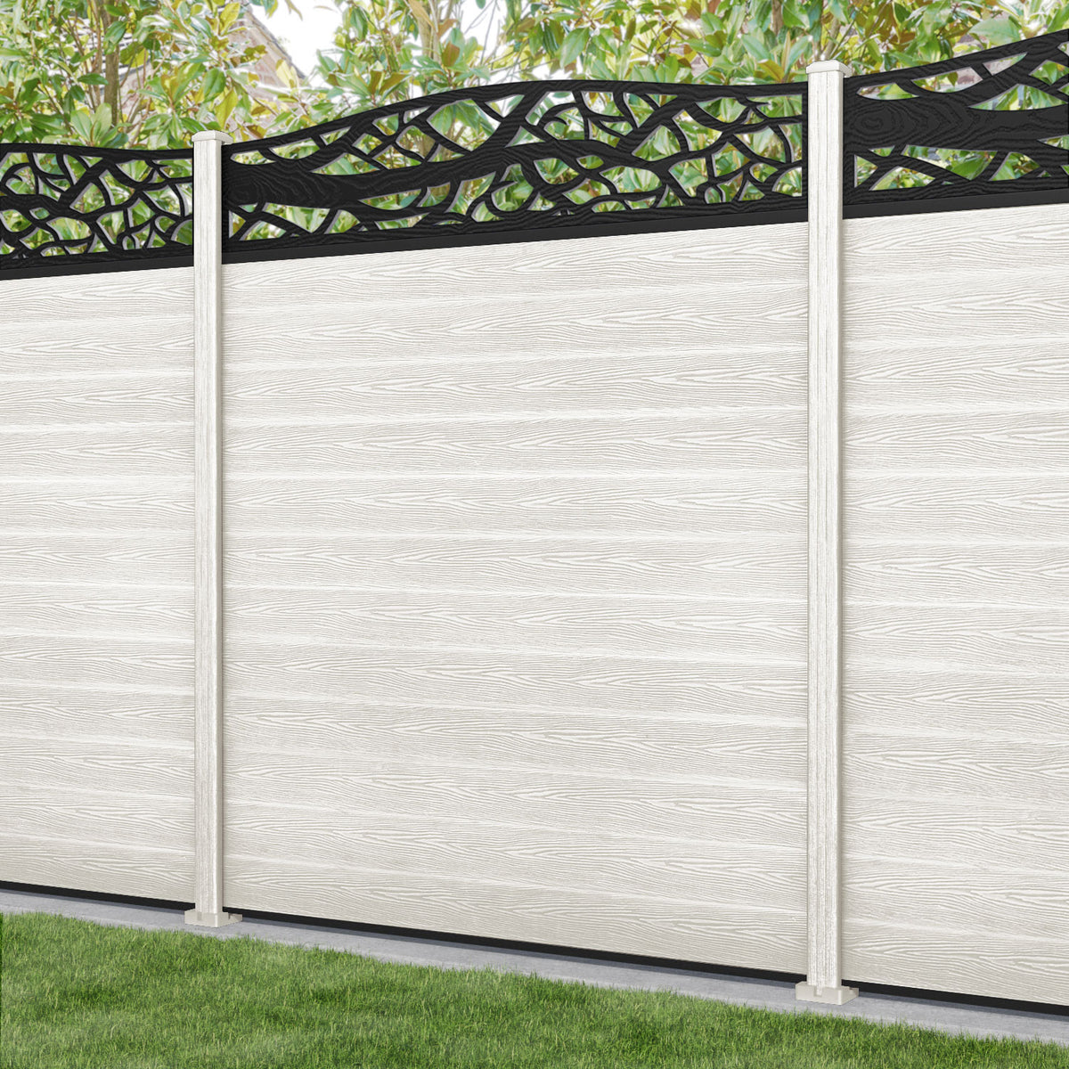 Classic Twilight Curved Top Fence Panel Light Stone - with our composite posts