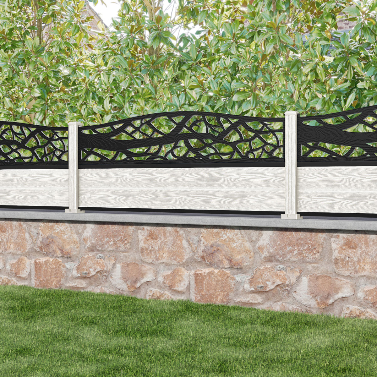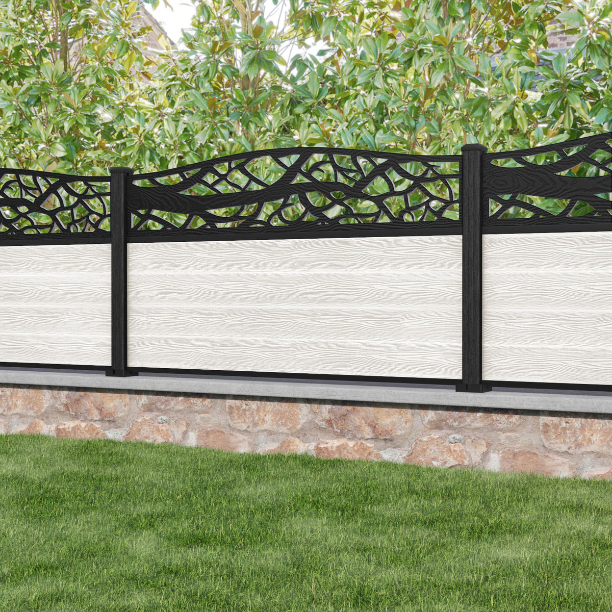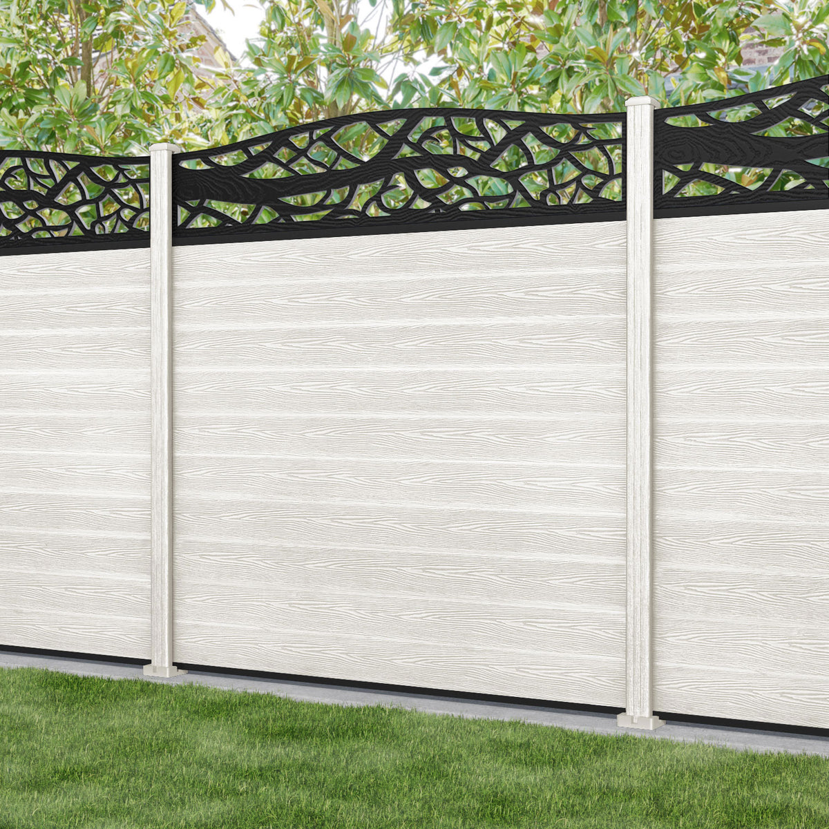 Classic Twilight Curved Top Fence Panel Light Stone - with our composite posts