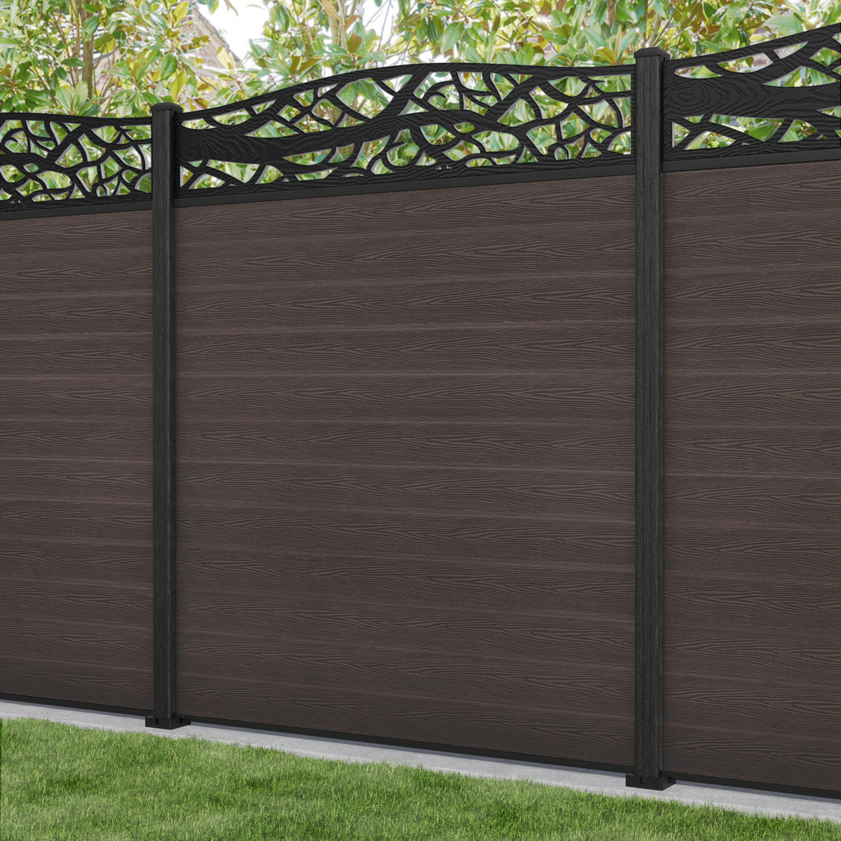 Classic Twilight Curved Top Fence Panel Mid Brown - with our composite posts