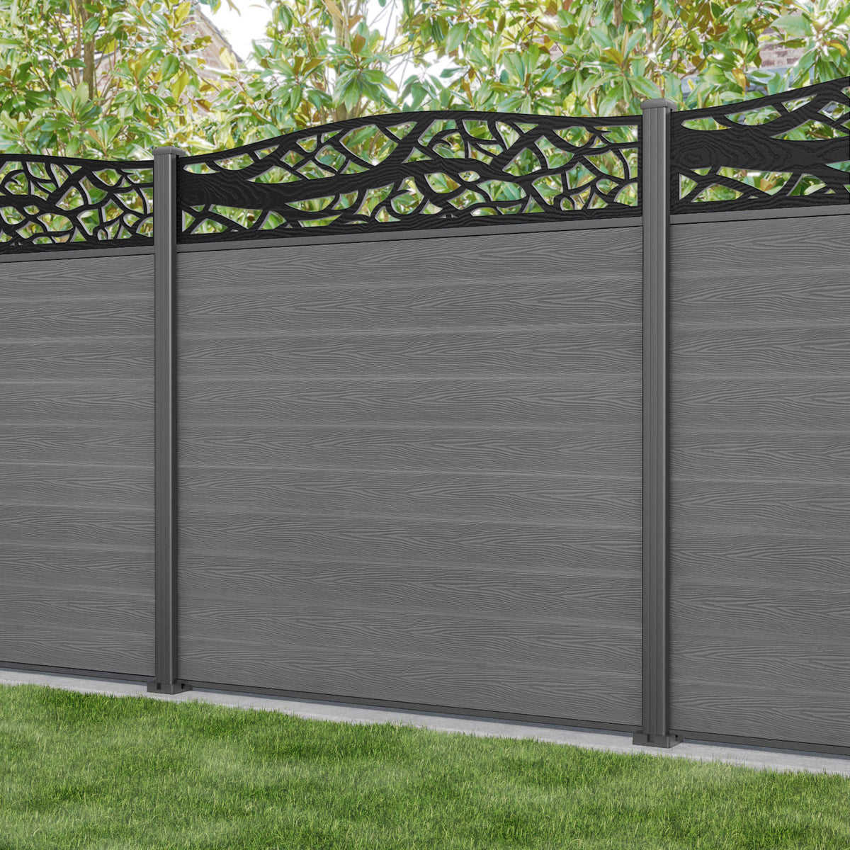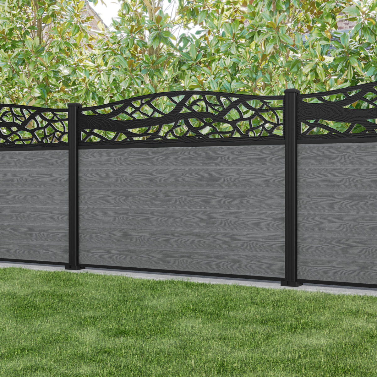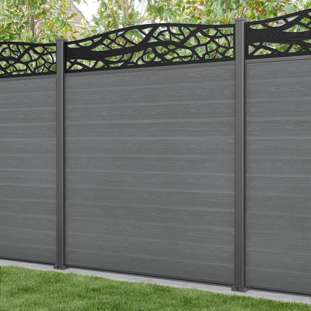 Classic Twilight Curved Top Fence Panel Mid Grey - with our aluminium posts
