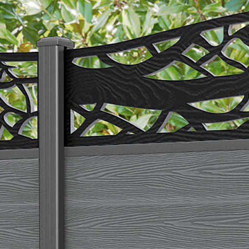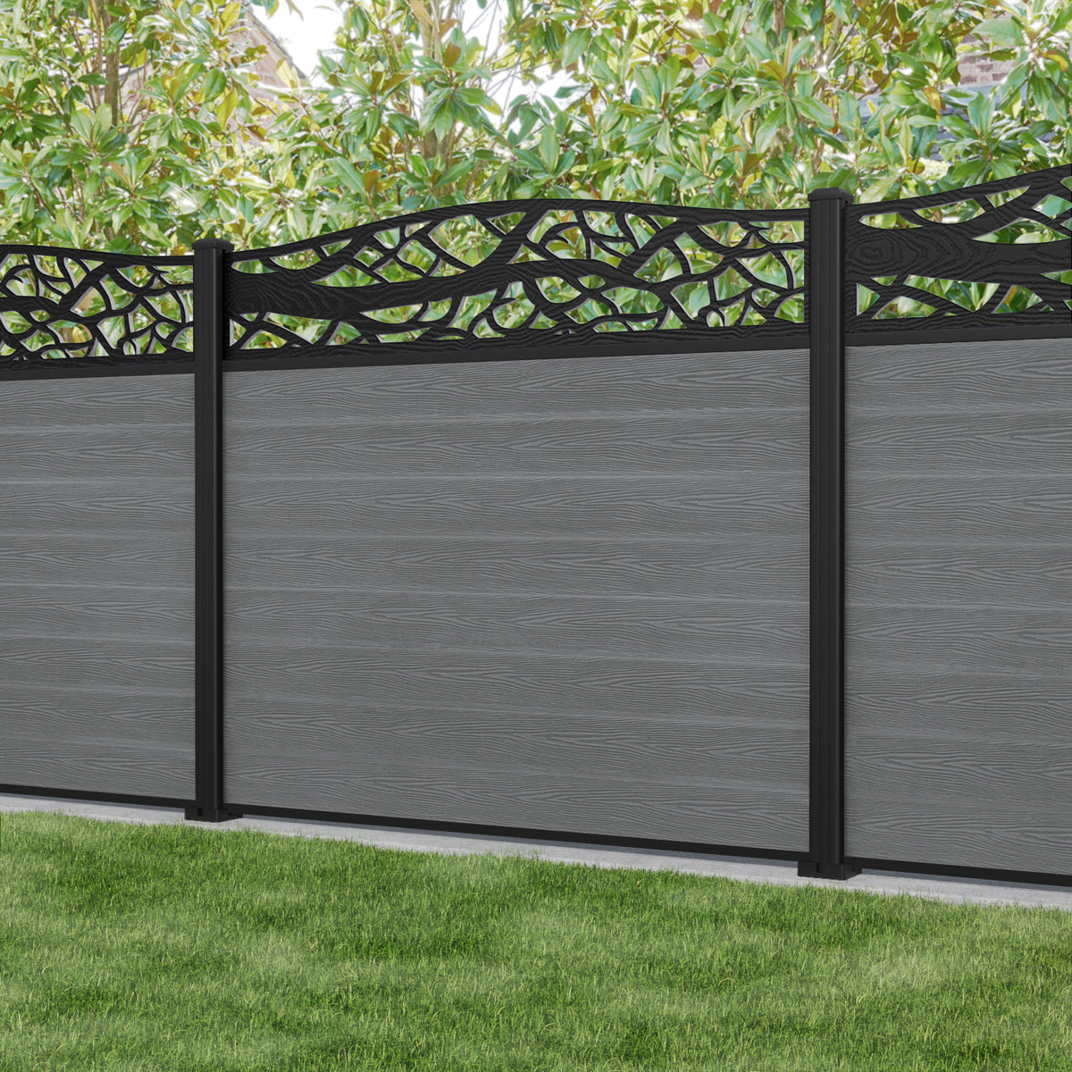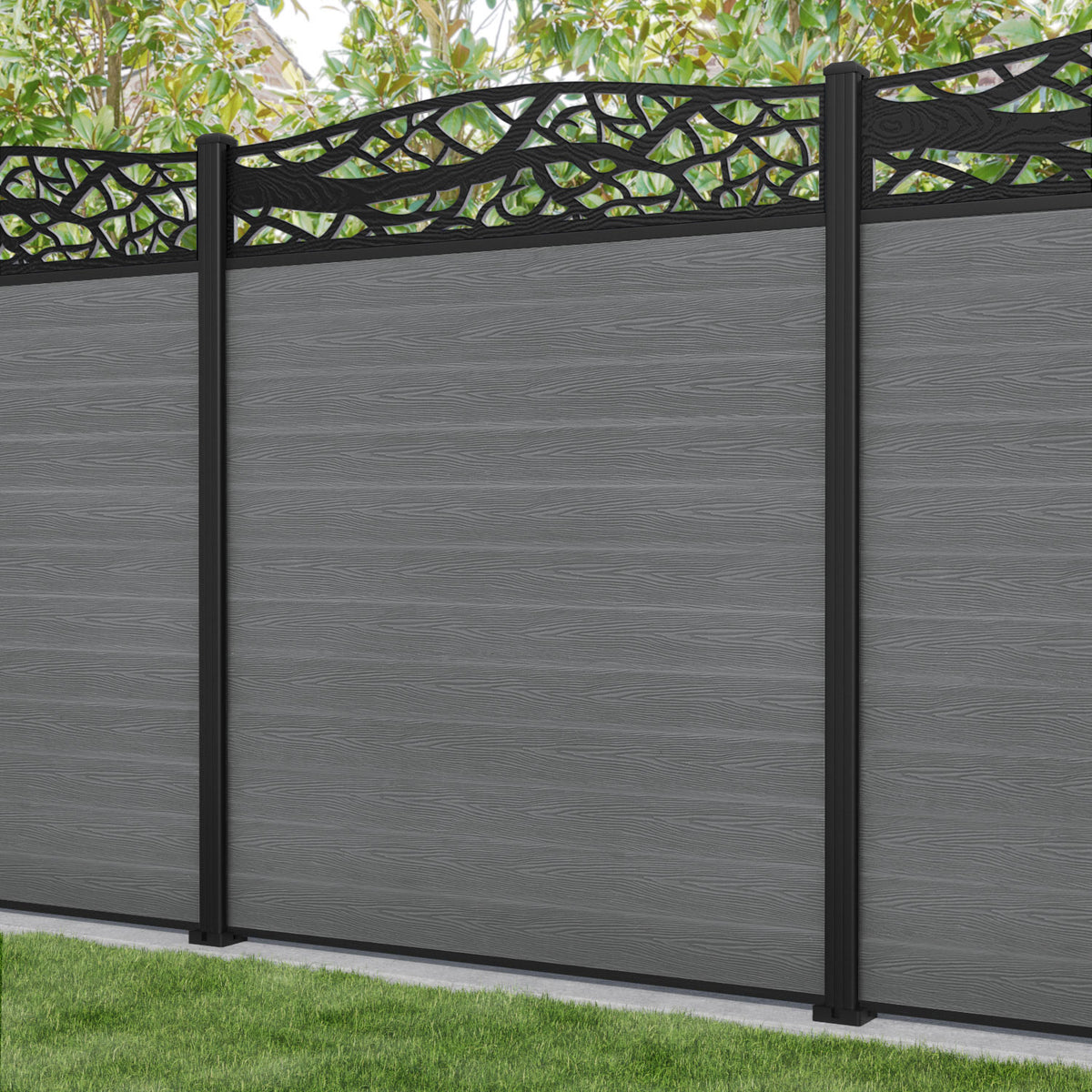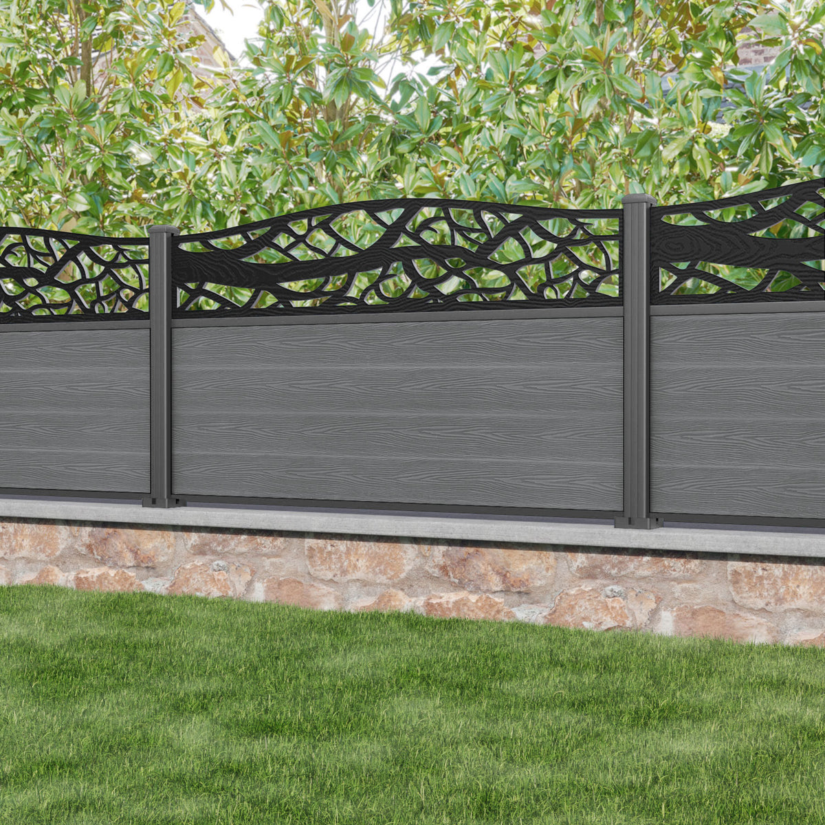 Classic Twilight Curved Top Fence Panel Mid Grey - with our aluminium posts