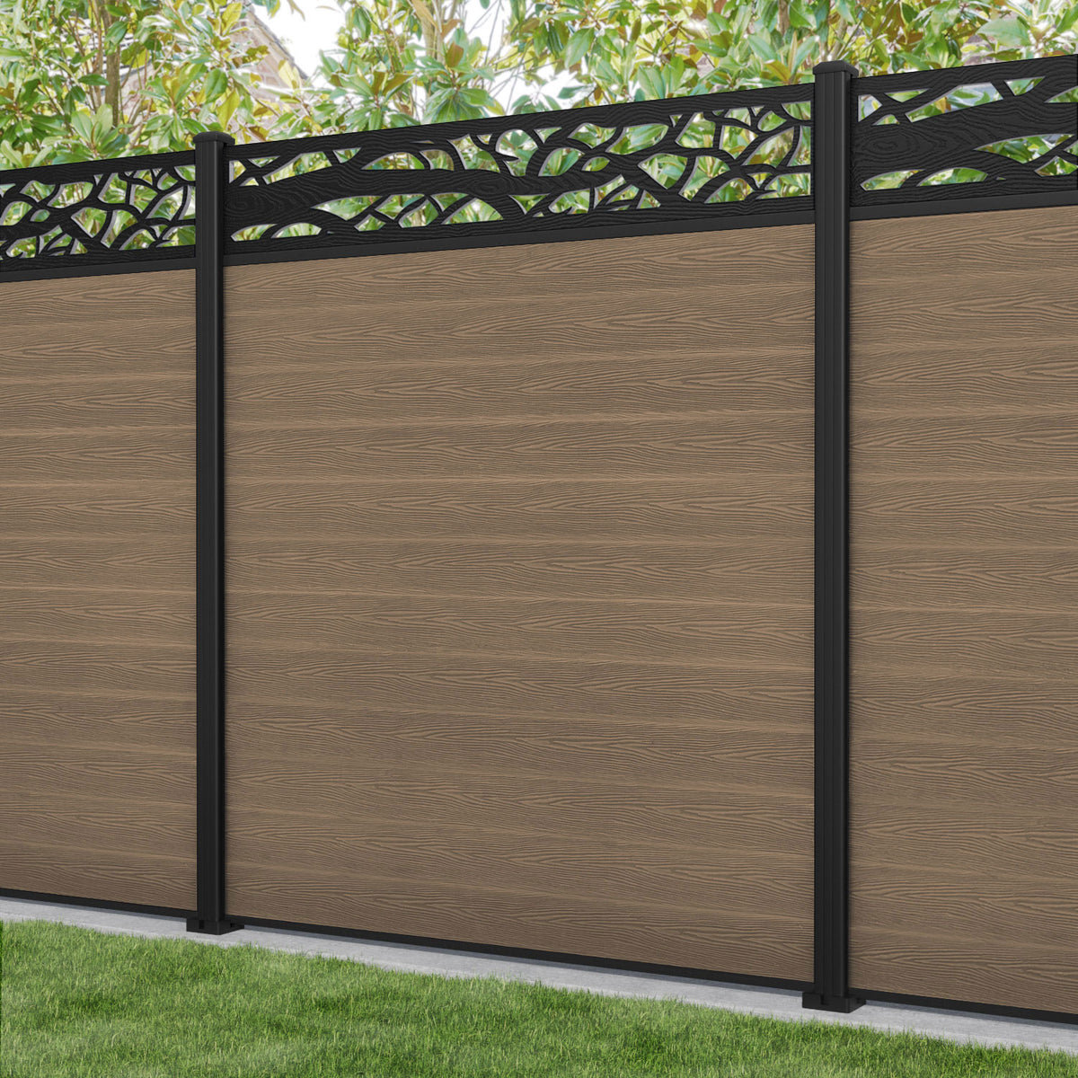 Classic Twilight Fence Panel Teak - with our aluminium posts