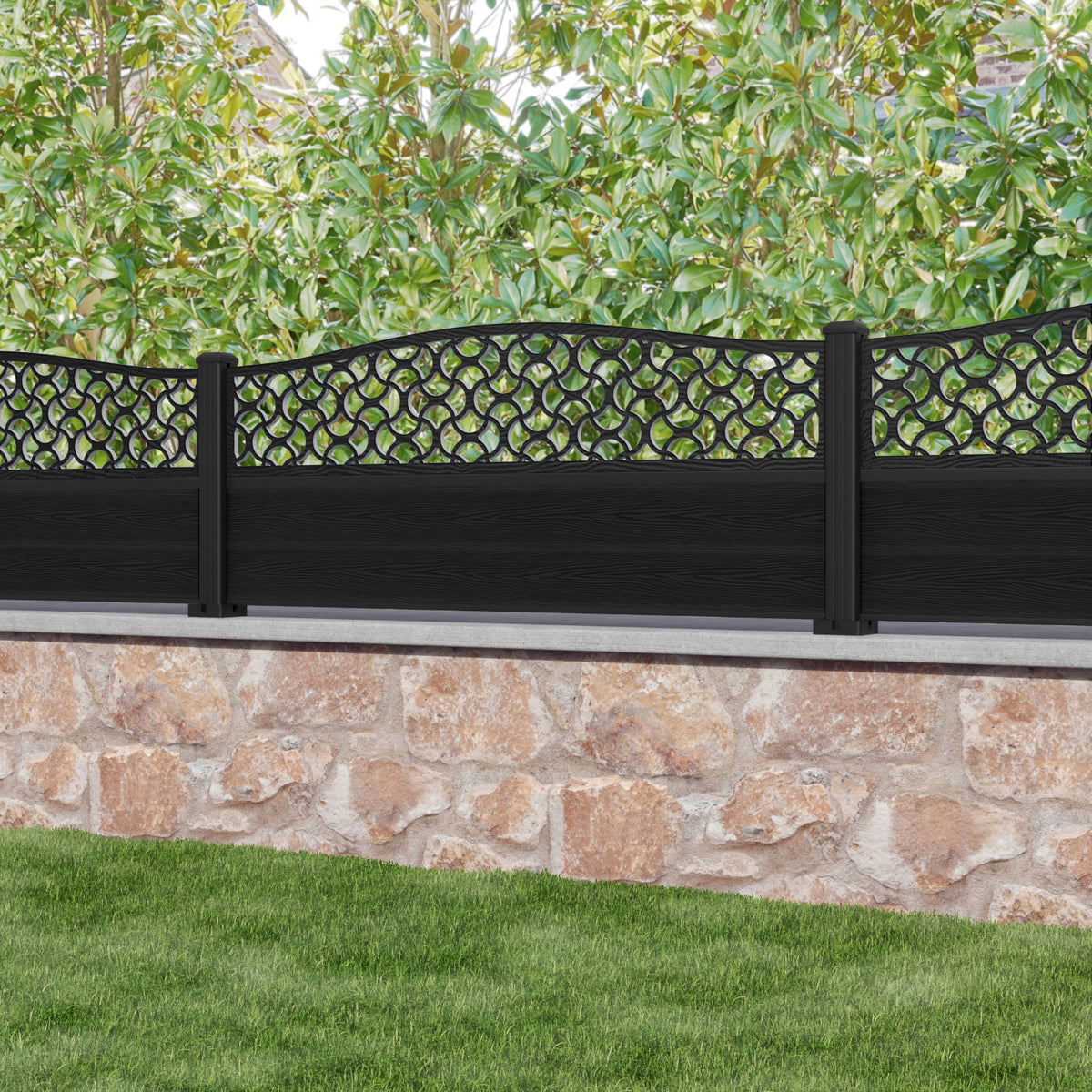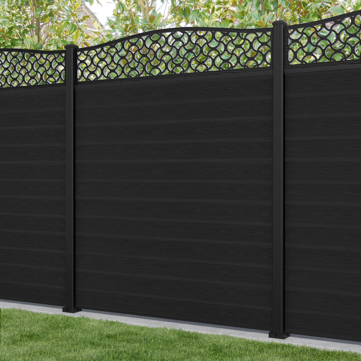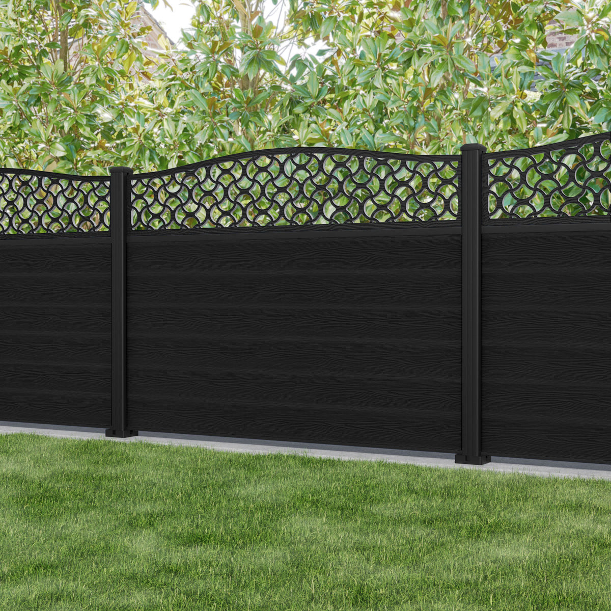 Classic Vida Curved Top Fence Panel Black - with our aluminium posts