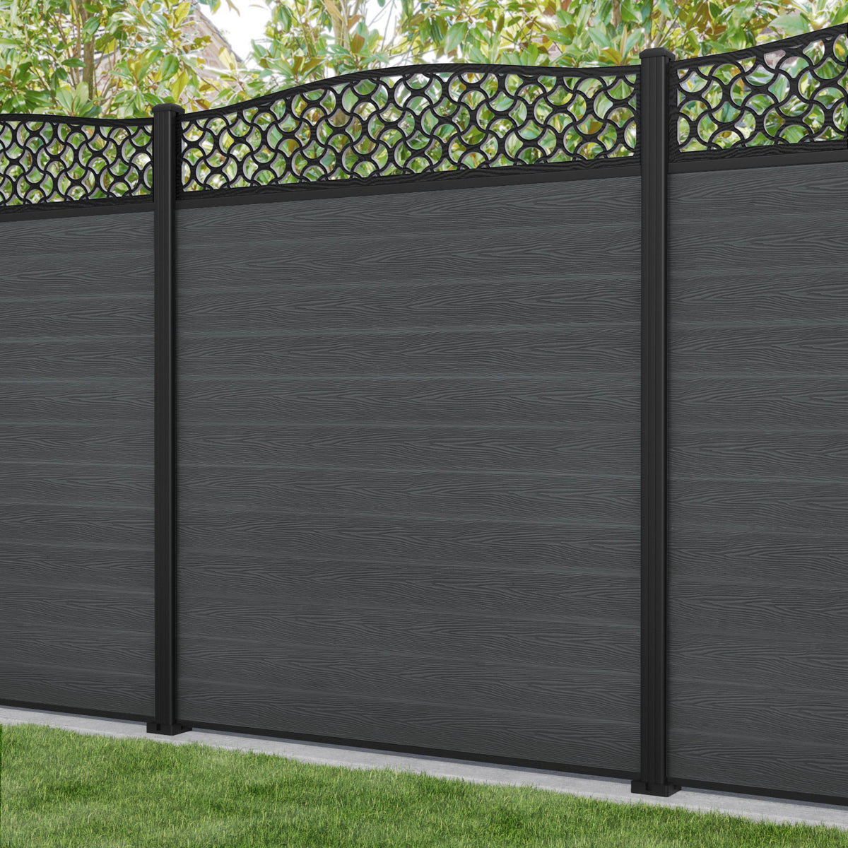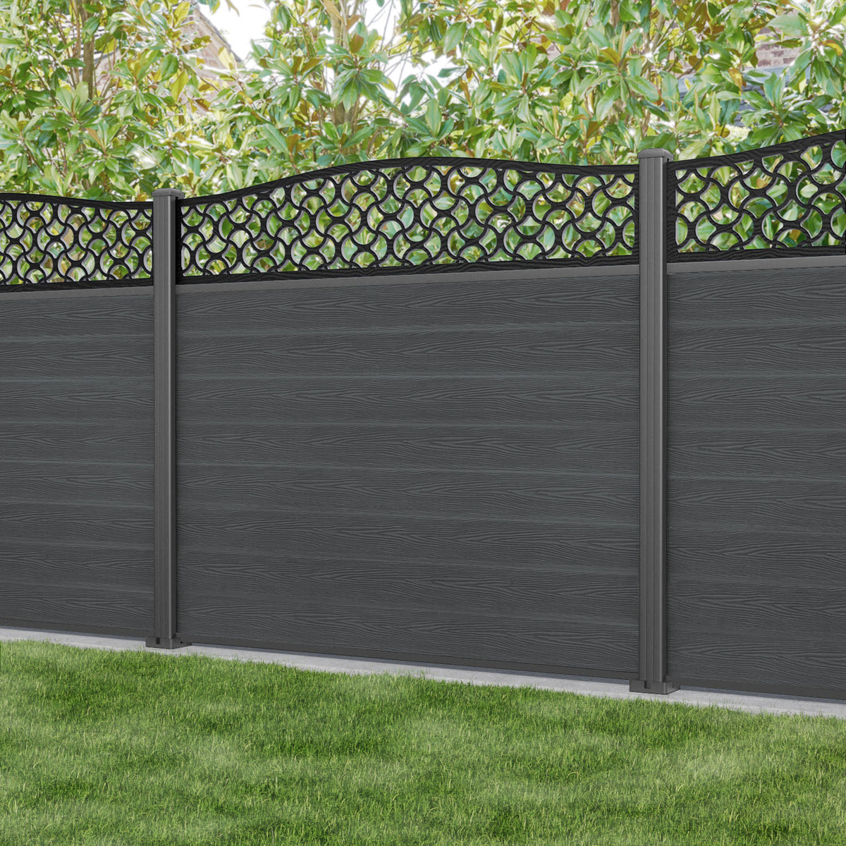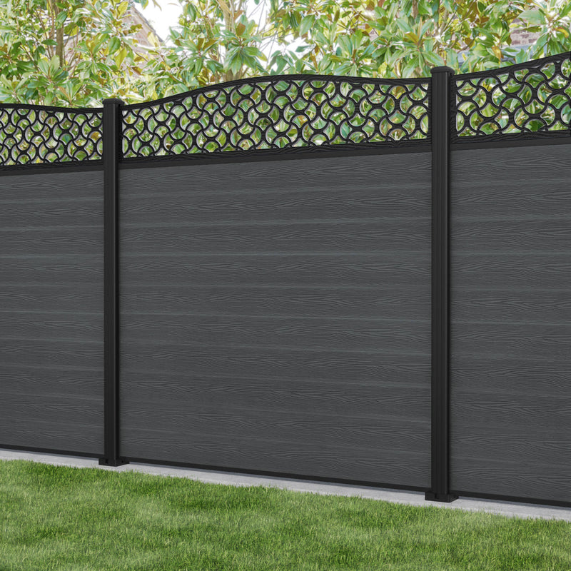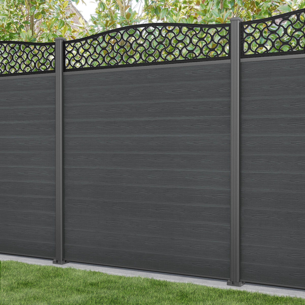 Classic Vida Curved Top Fence Panel Dark Grey - with our aluminium posts