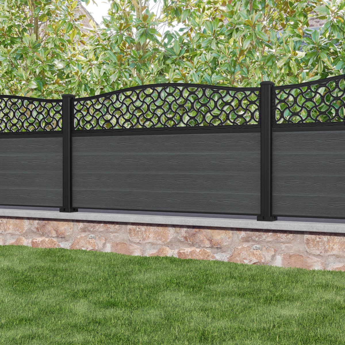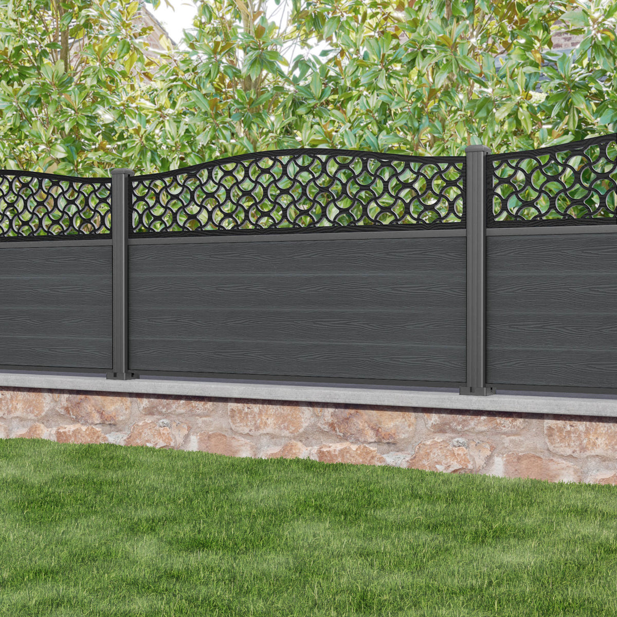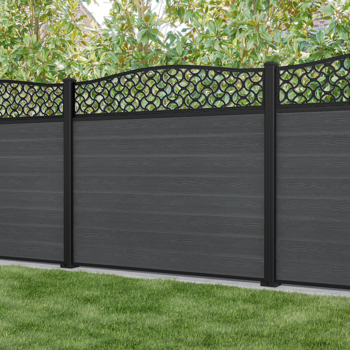 Classic Vida Curved Top Fence Panel Dark Grey - with our aluminium posts