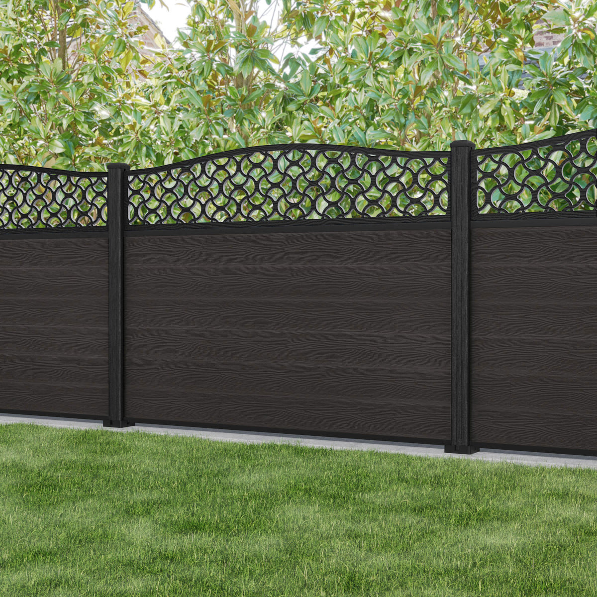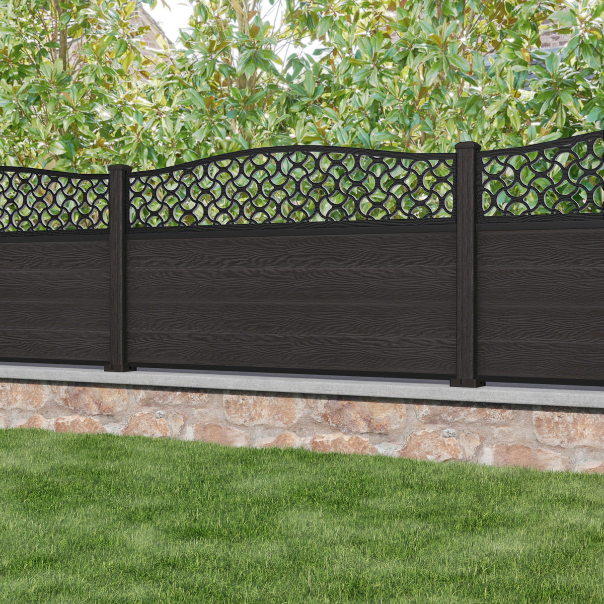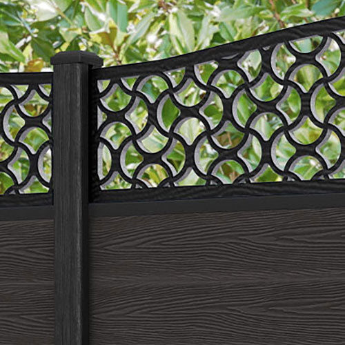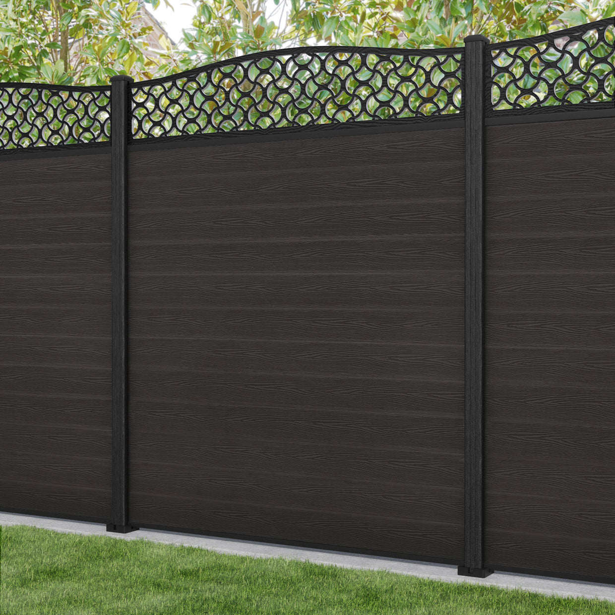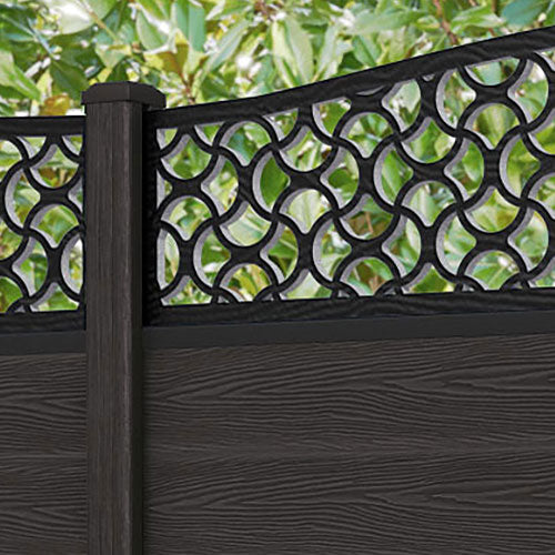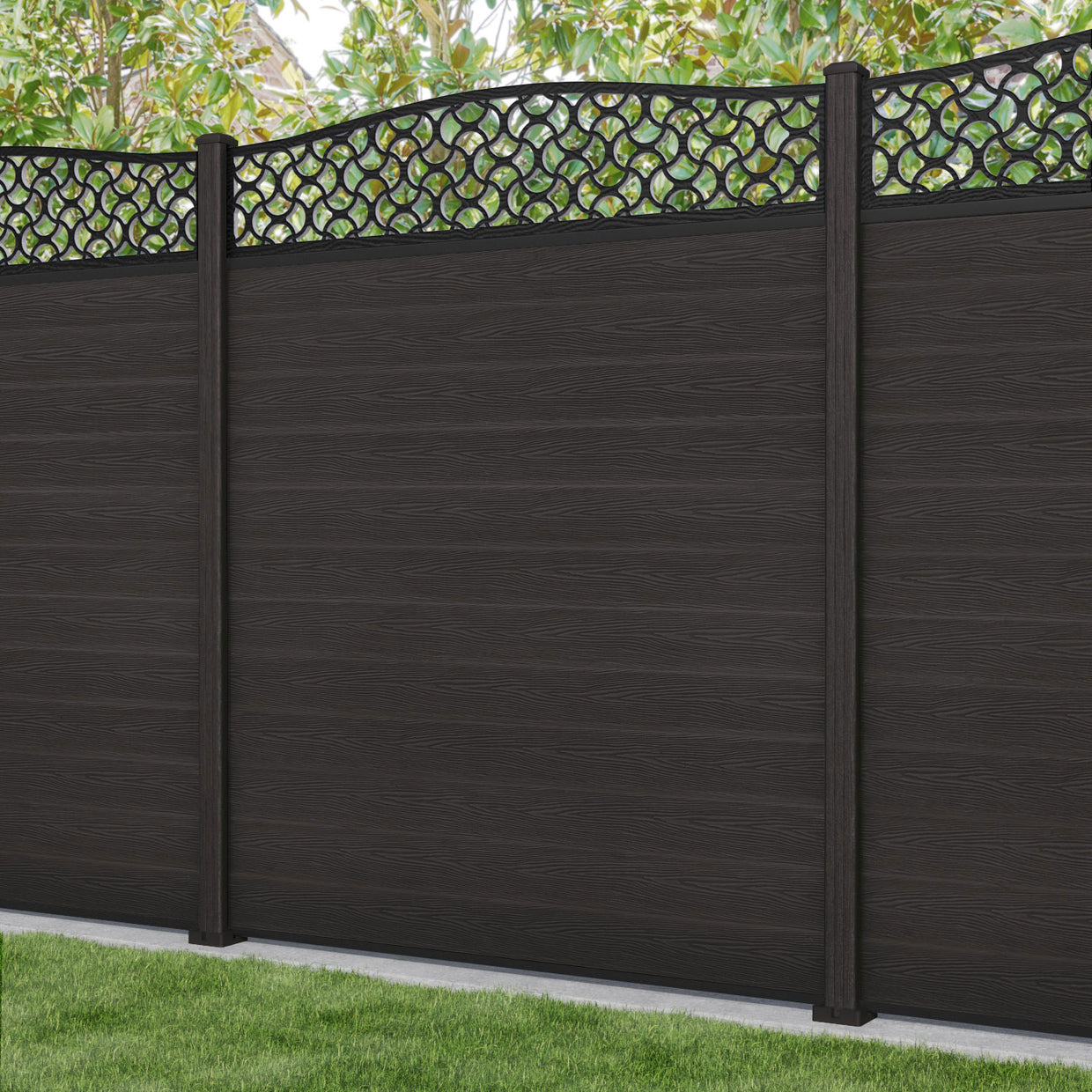 Classic Vida Curved Top Fence Panel Dark Oak - with our composite posts