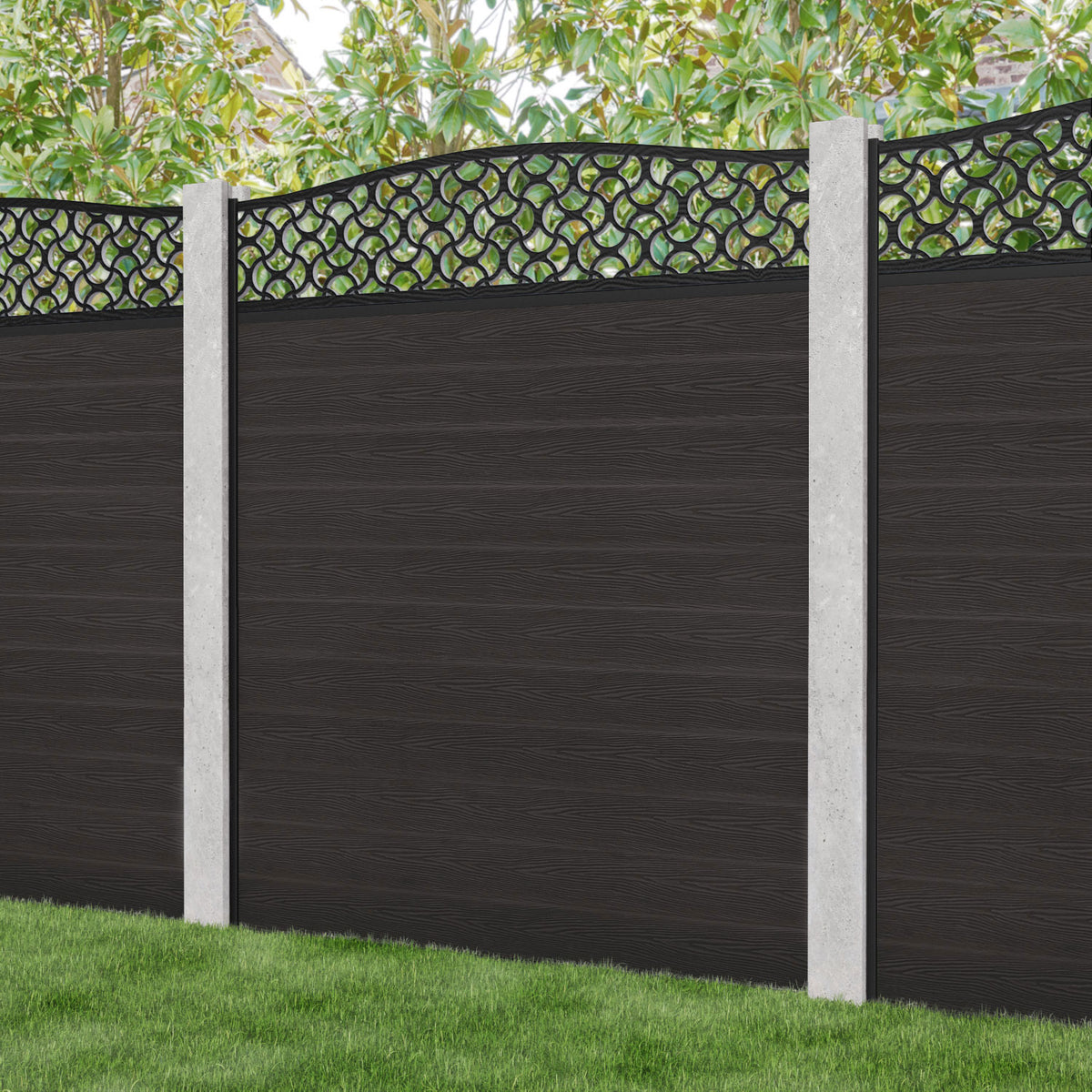 Classic Vida Curved Top Fence Panel Dark Oak - for existing concrete posts