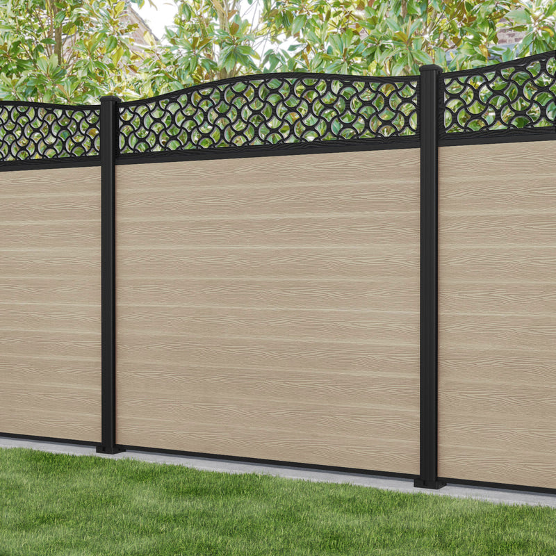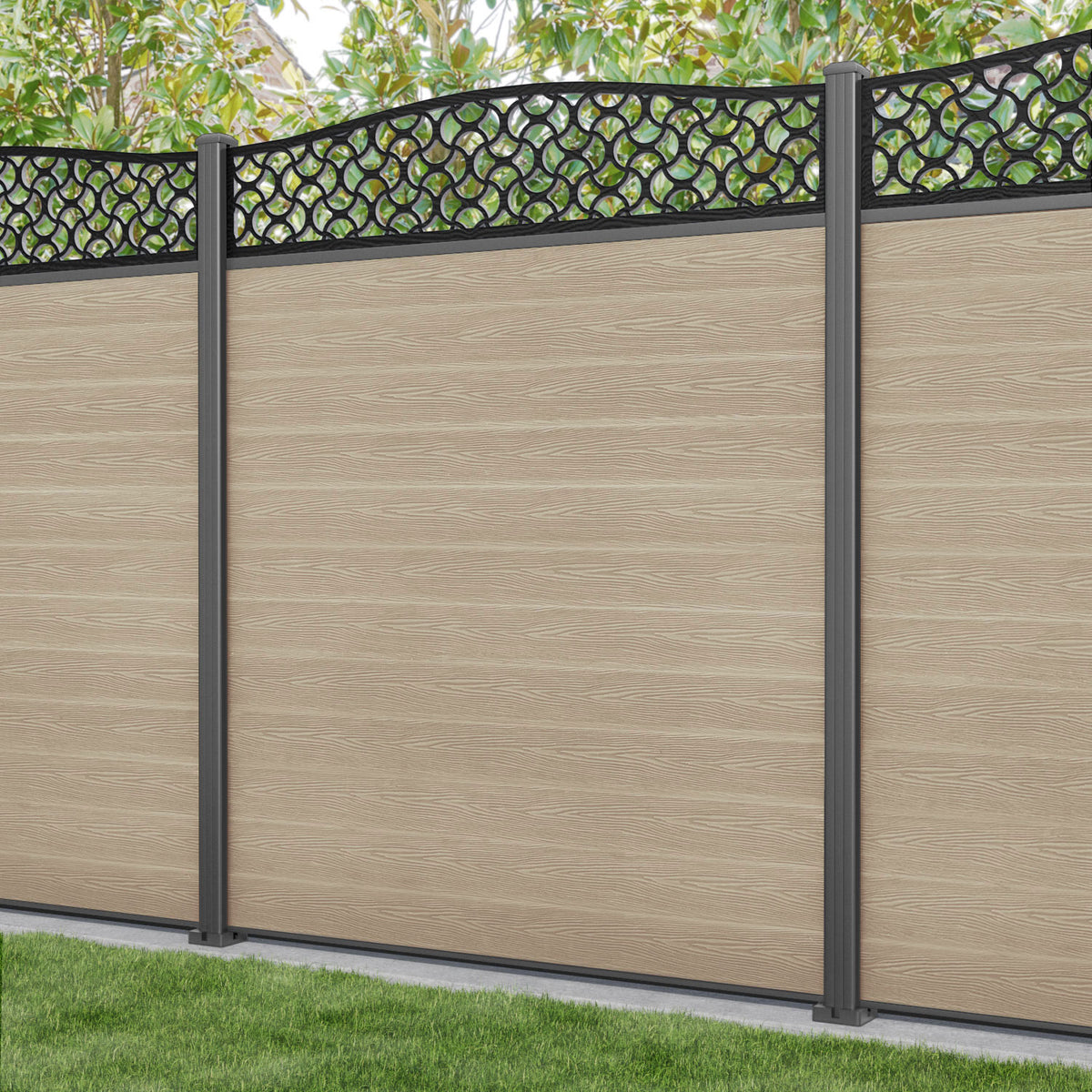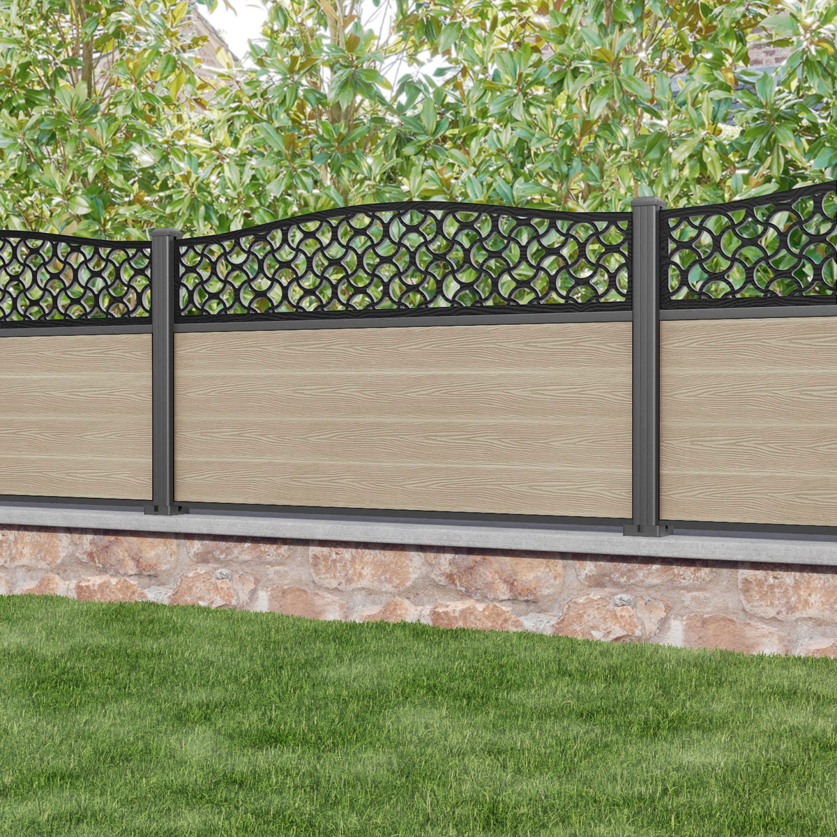 Classic Vida Curved Top Fence Panel Light Oak - with our aluminium posts