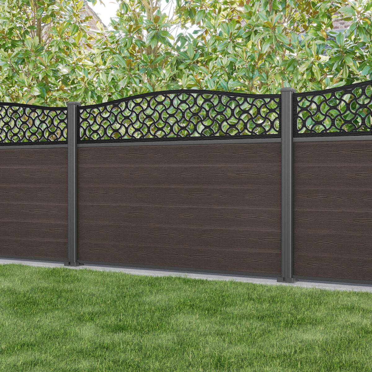 Classic Vida Curved Top Fence Panel Mid Brown - with our aluminium posts