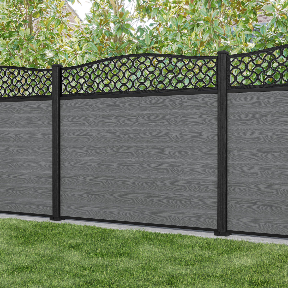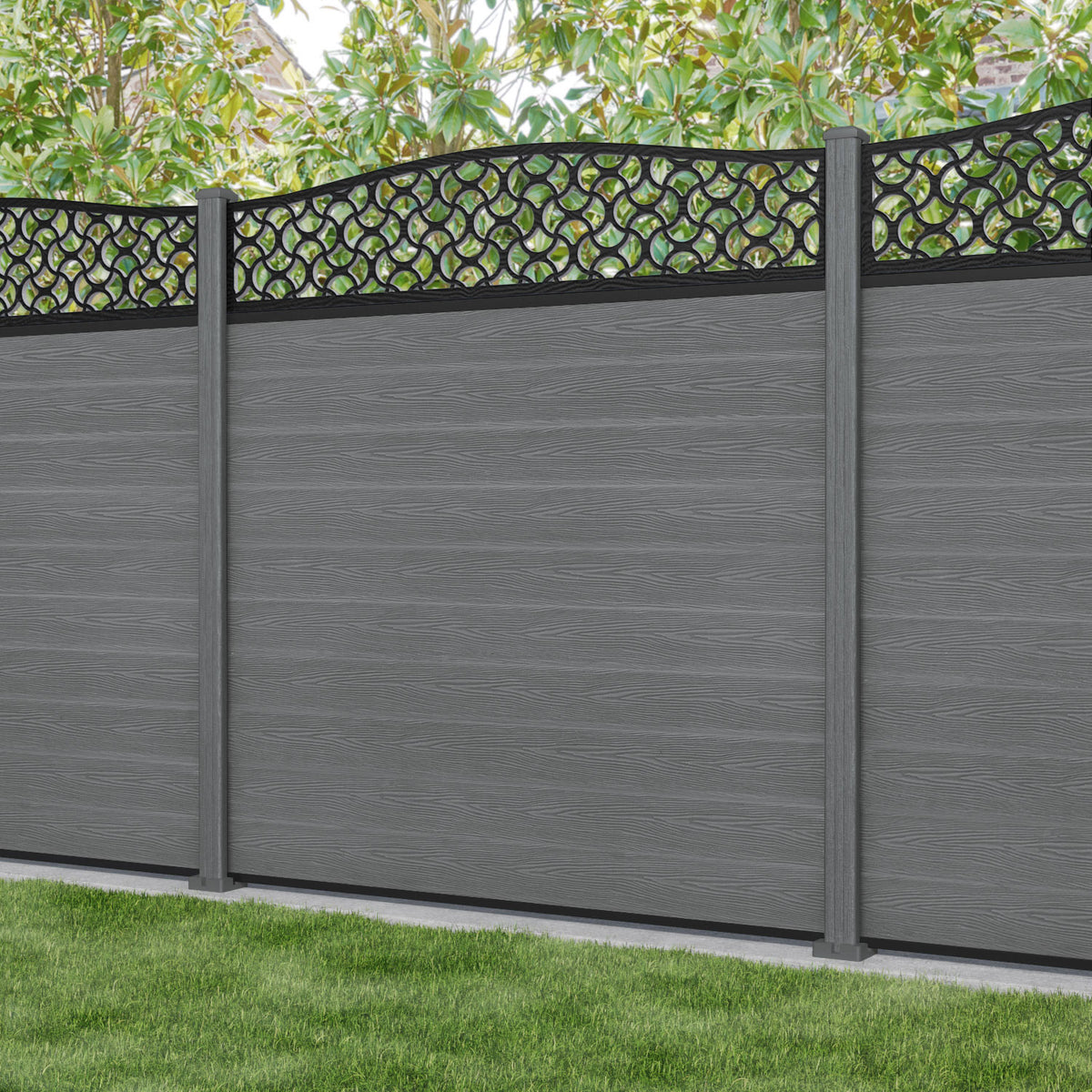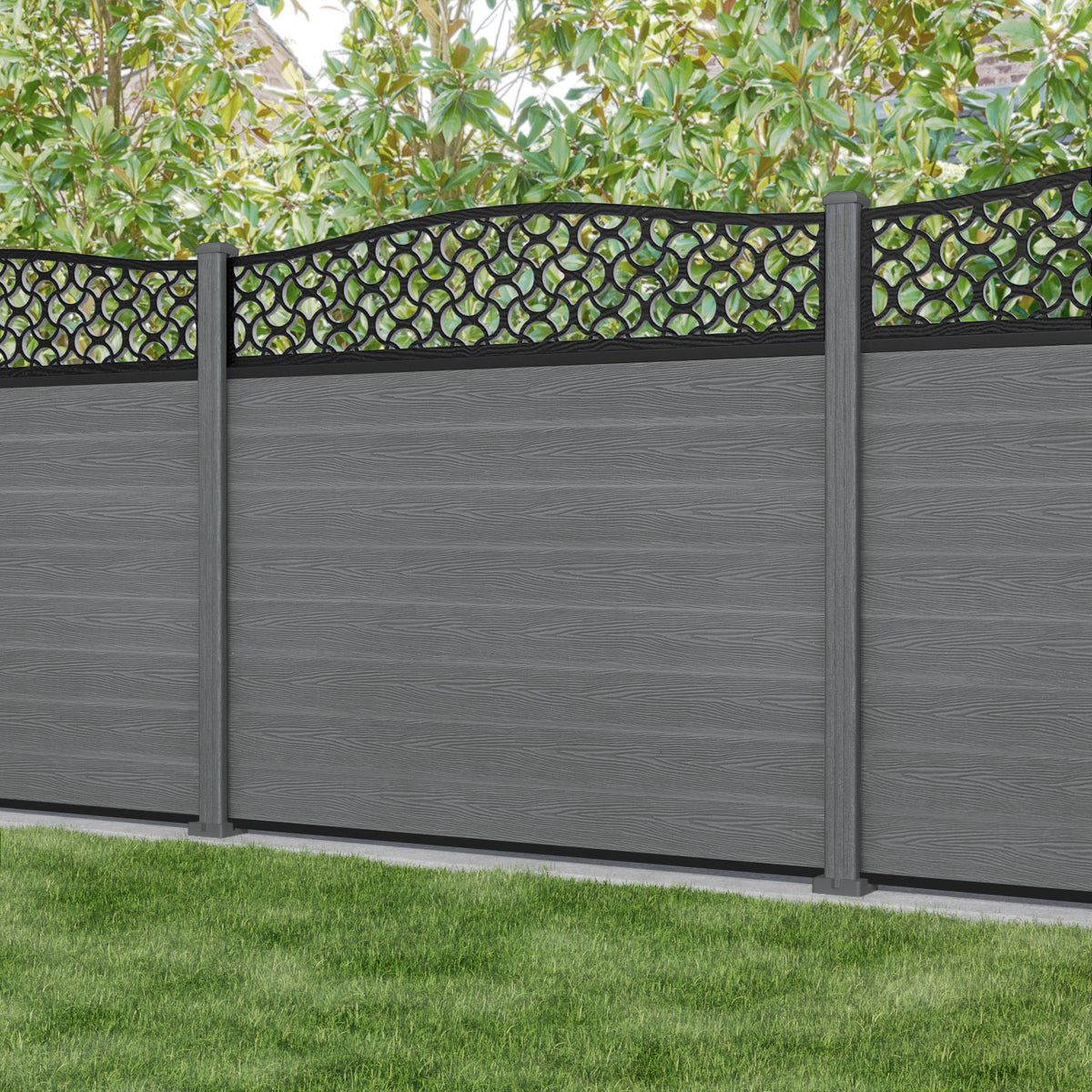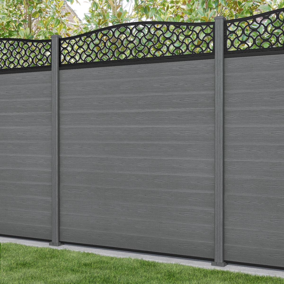 Classic Vida Curved Top Fence Panel Mid Grey - with our composite posts