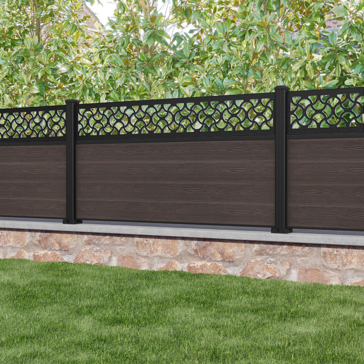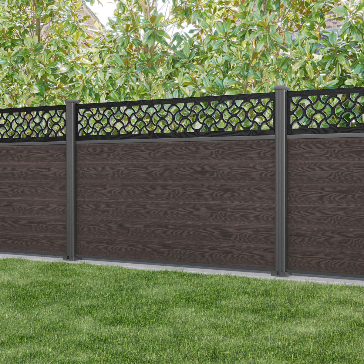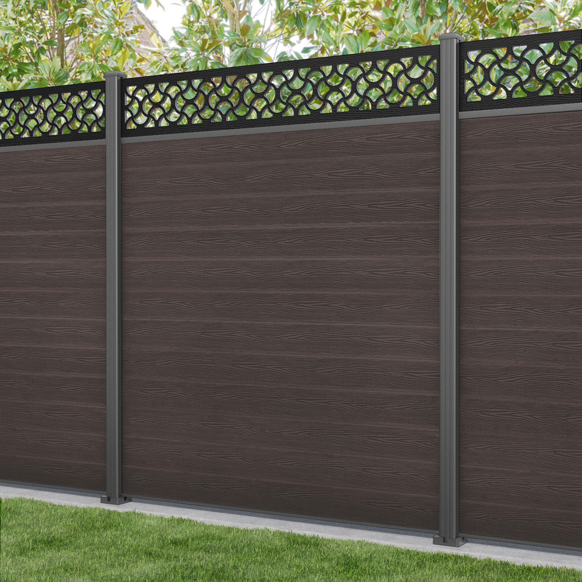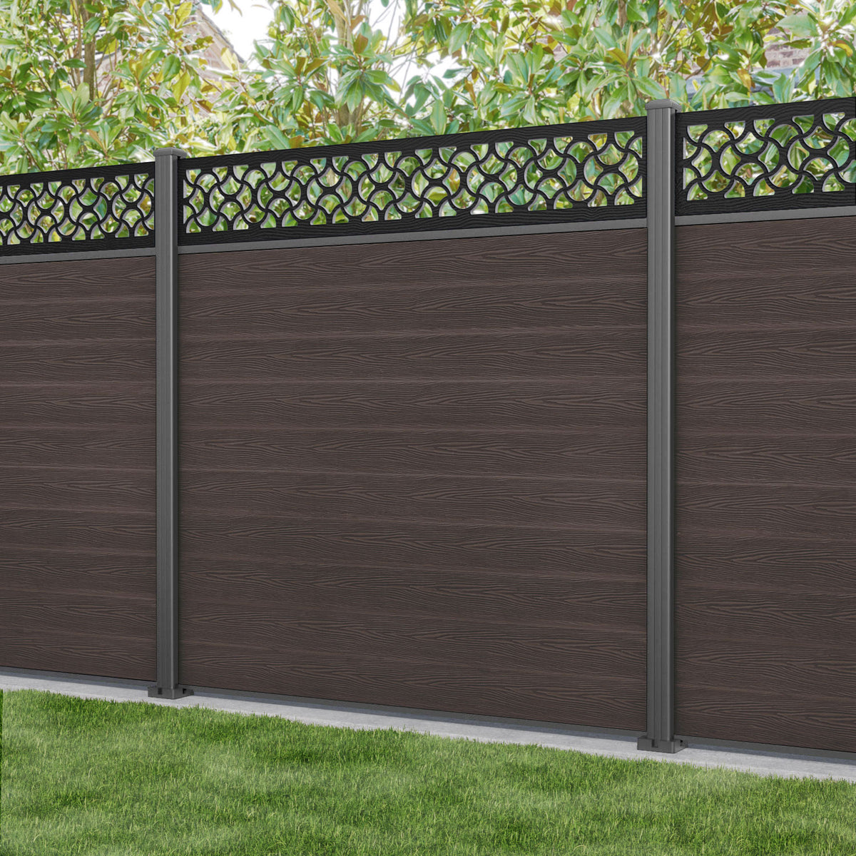 Classic Vida Fence Panel Mid Brown - with our aluminium posts