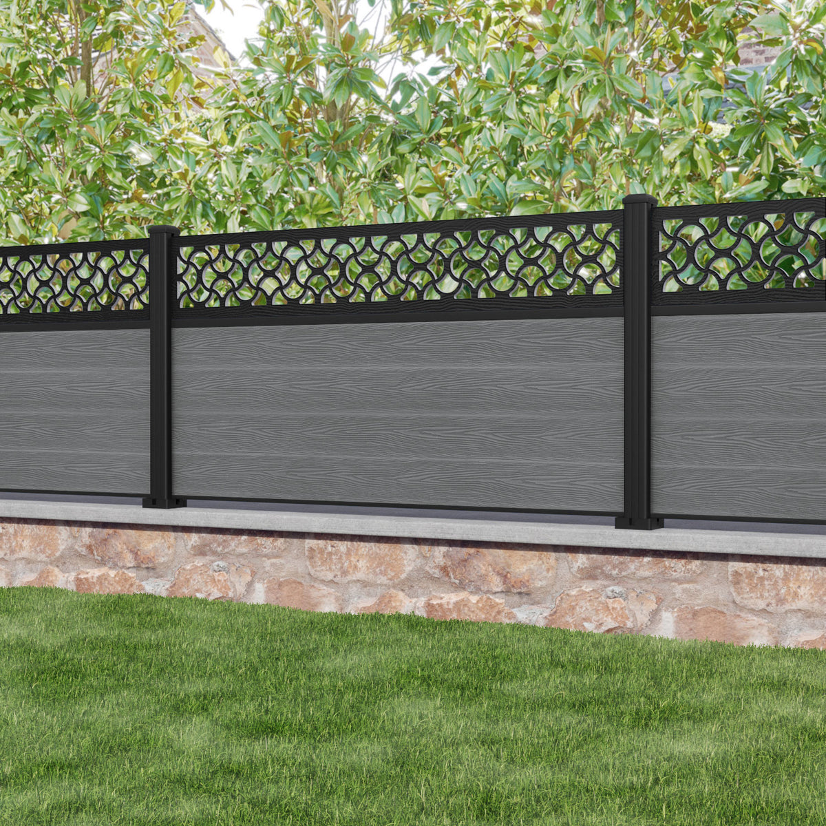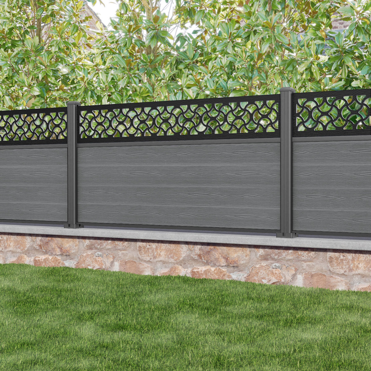 Classic Vida Fence Panel Mid Grey - with our aluminium posts