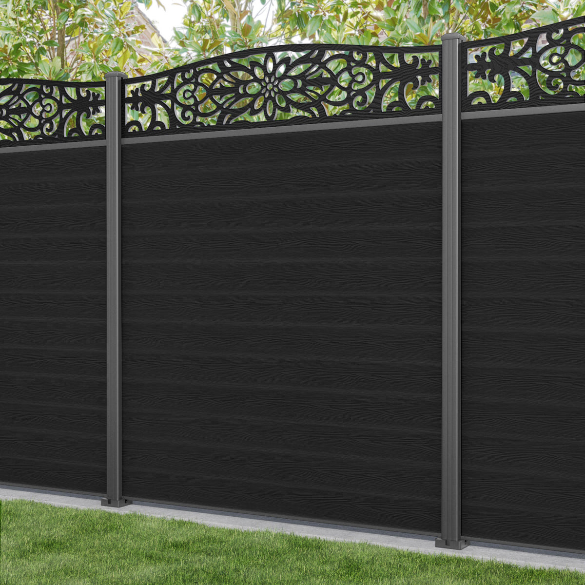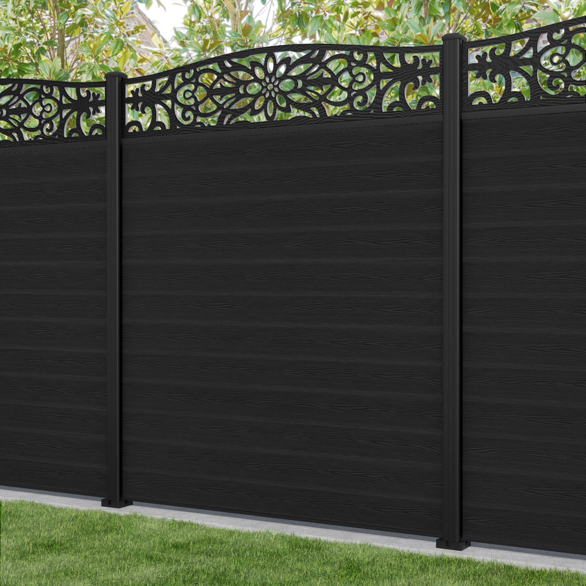 Classic Windsor Curved Top Fence Panel Black - with our aluminium posts