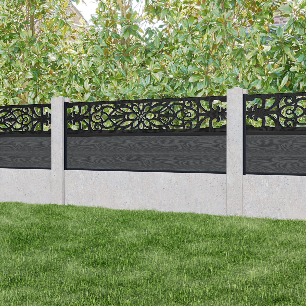 Classic Windsor Fence Panel Dark Grey - for existing concrete posts
