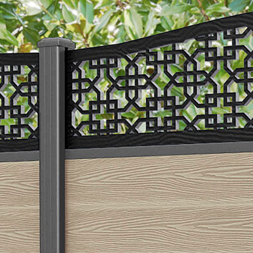 Classic Zaria Curved Top Fence Panel Light Oak - with our aluminium posts