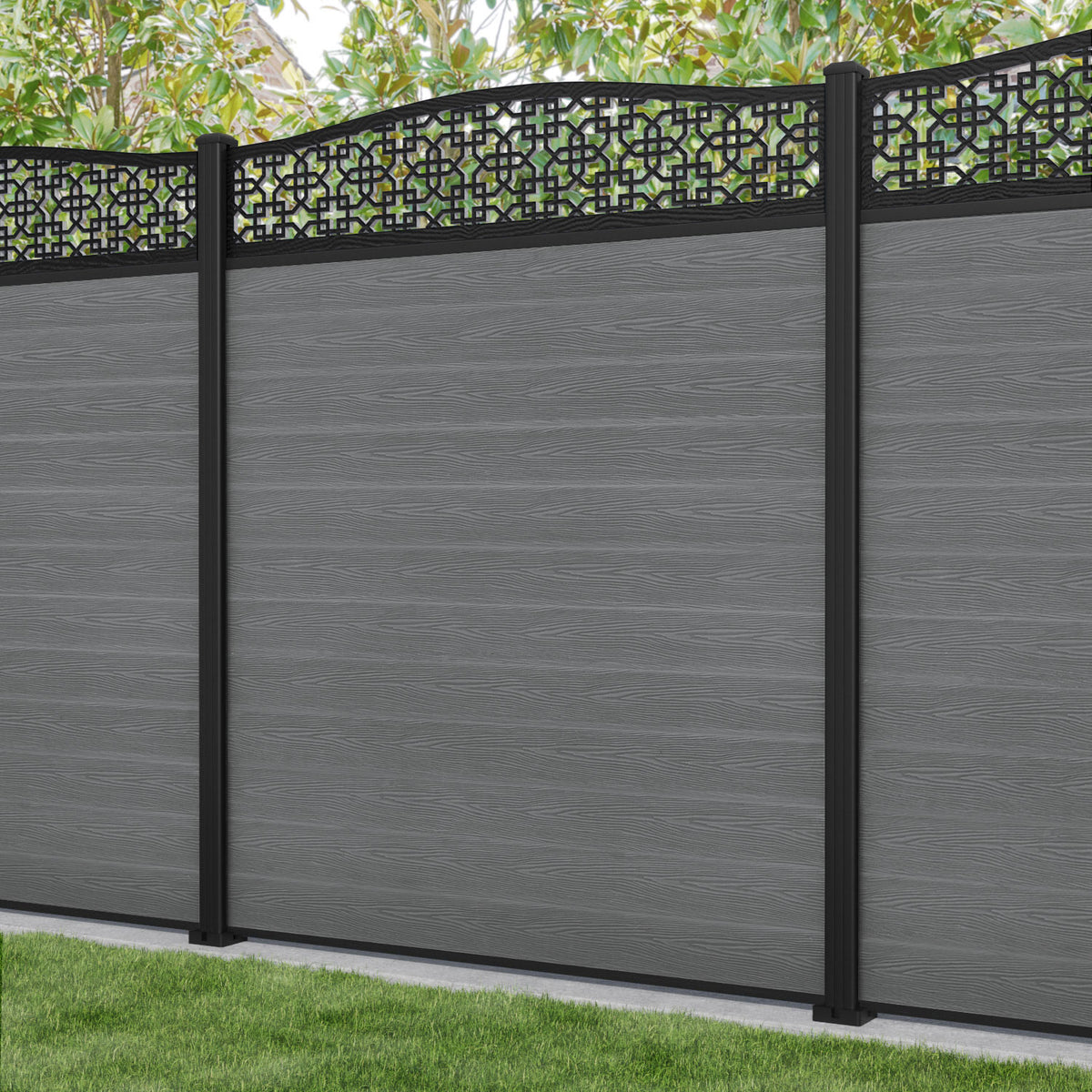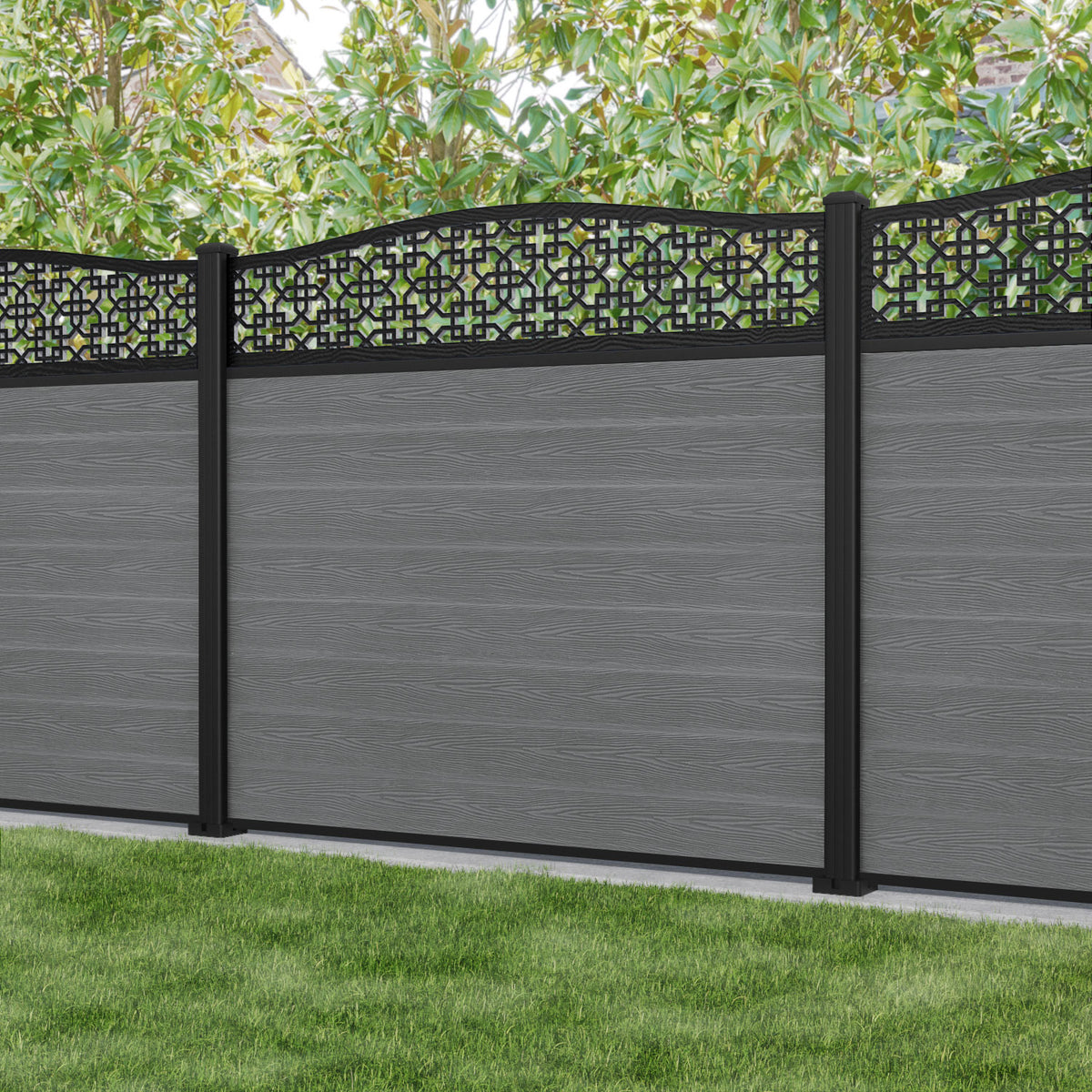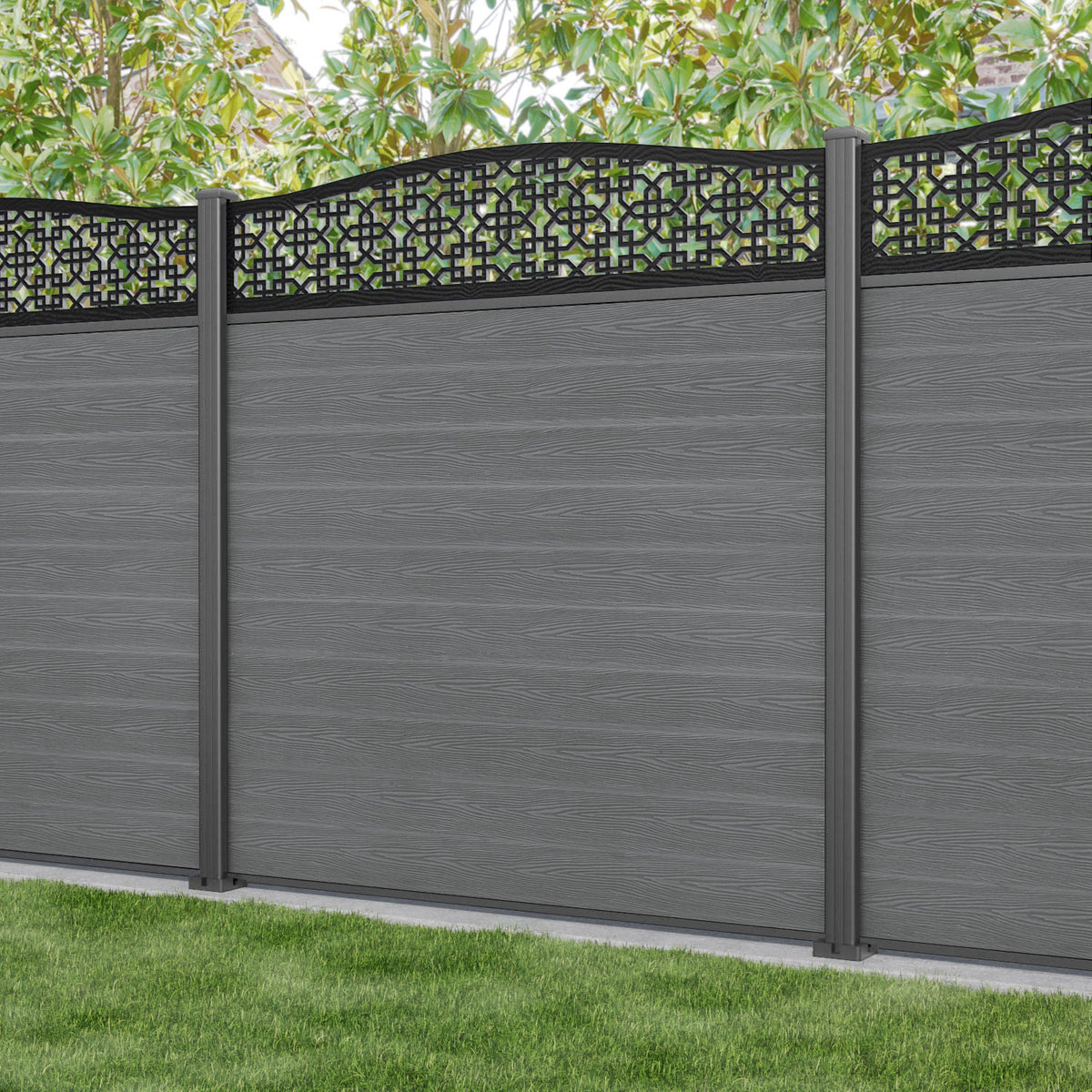 Classic Zaria Curved Top Fence Panel Mid Grey - with our aluminium posts