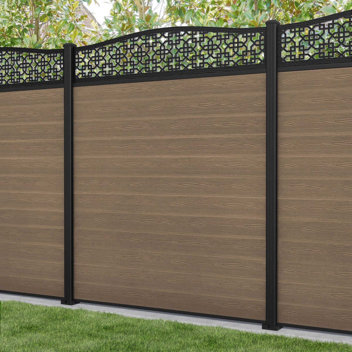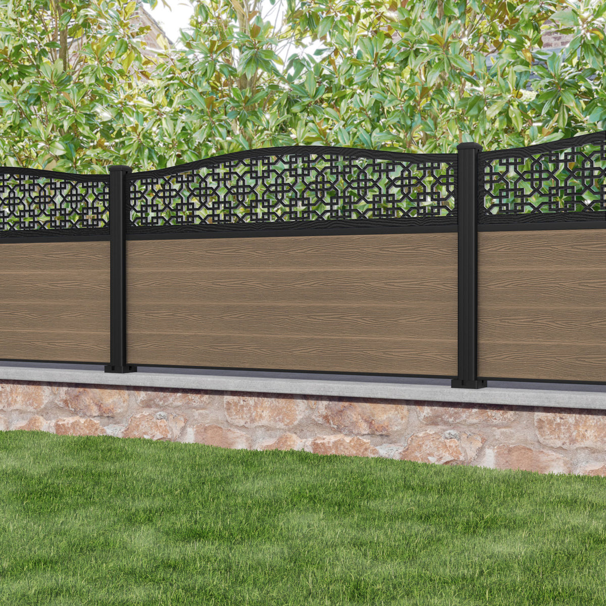 Classic Zaria Curved Top Fence Panel Teak - with our aluminium posts