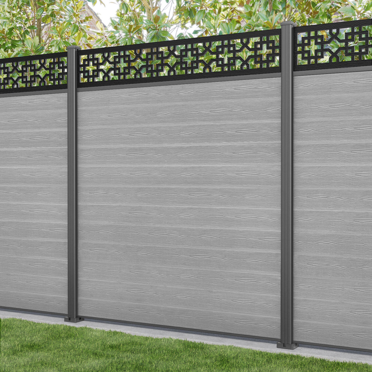Classic Zaria Fence Panel Light Grey - with our aluminium posts