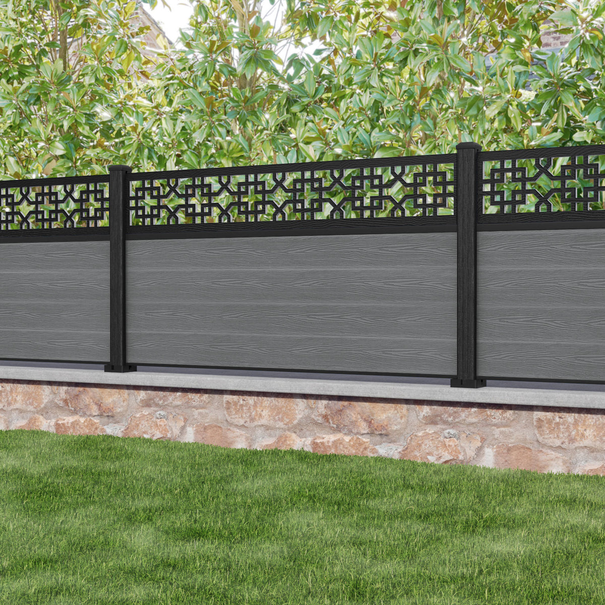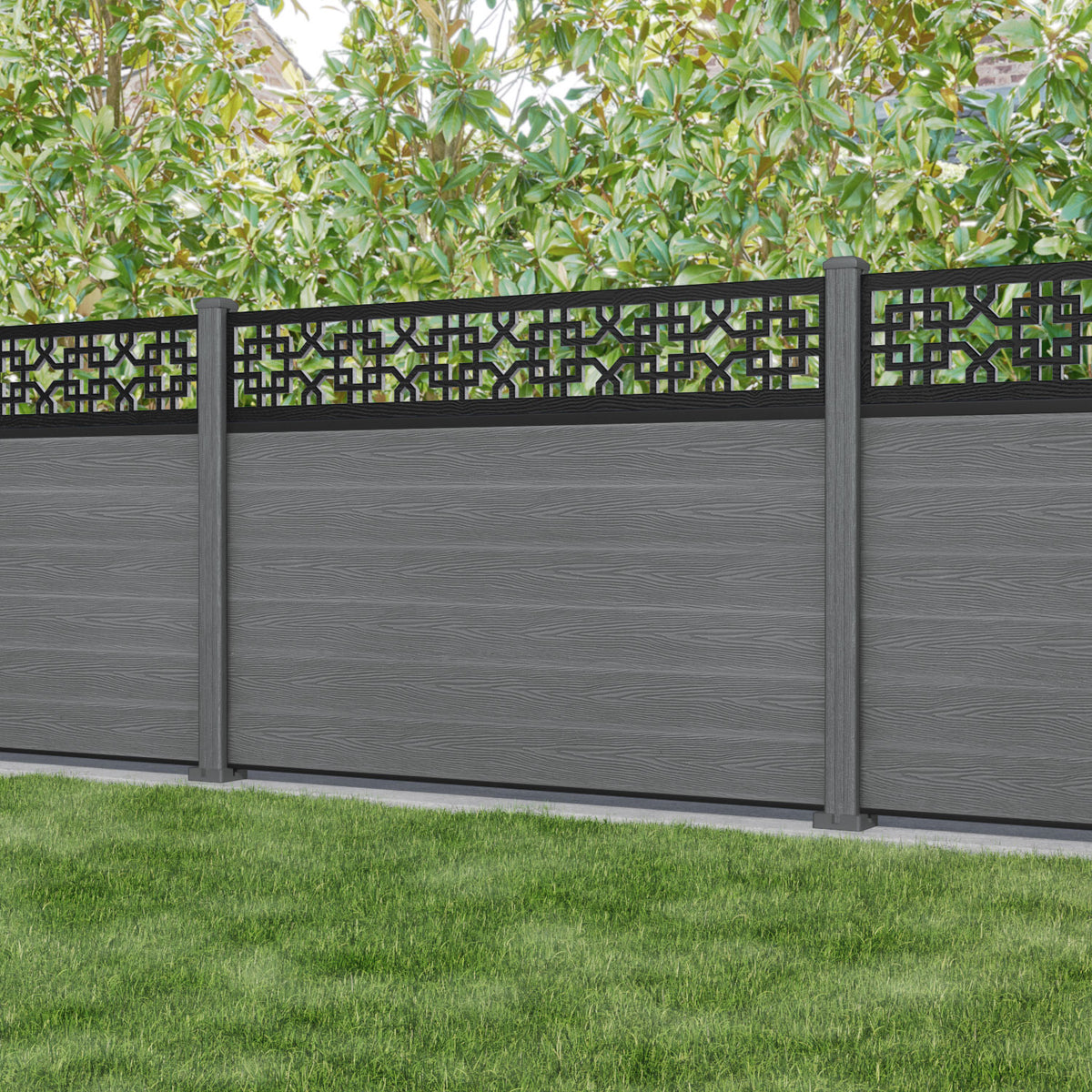 Classic Zaria Fence Panel - Mid Grey - with our composite posts