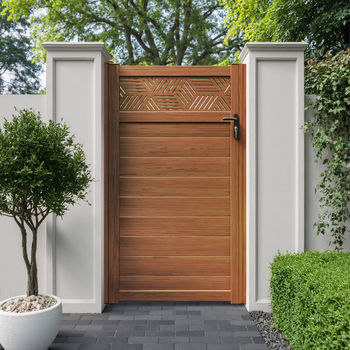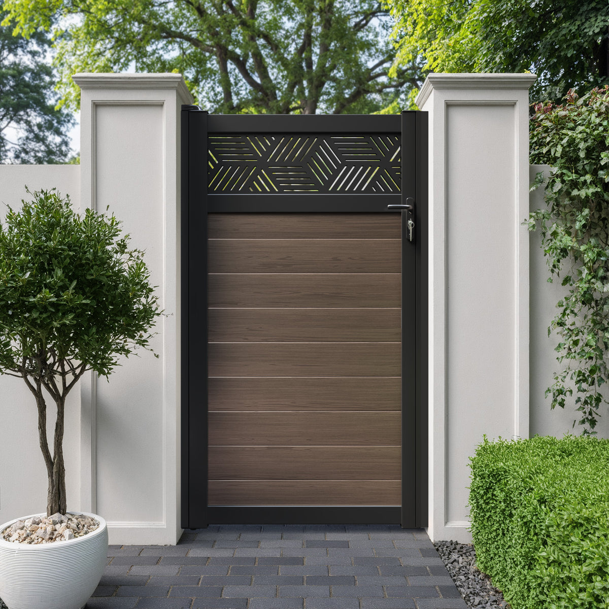 Pair your gate with our eco-friendly composite or aluminium slats for a seamless match to our fencing collections, ensuring a stylish and cohesive look.