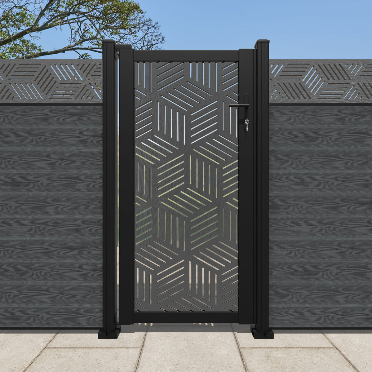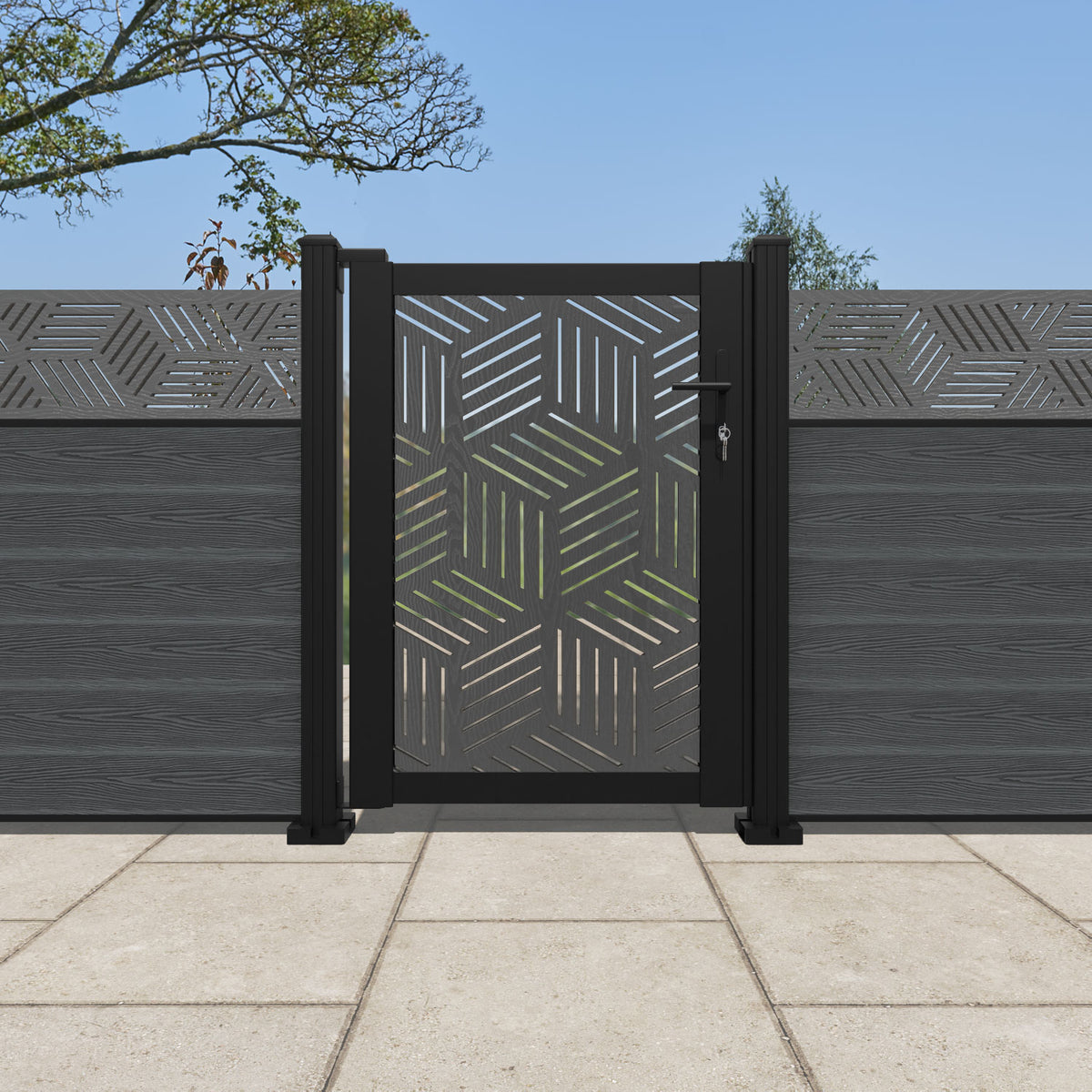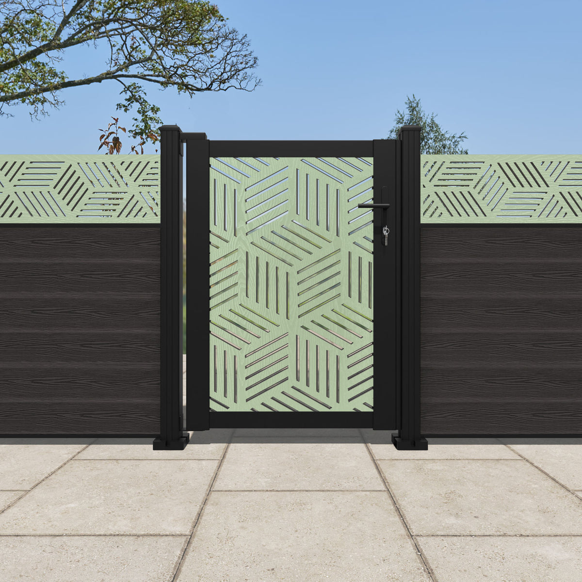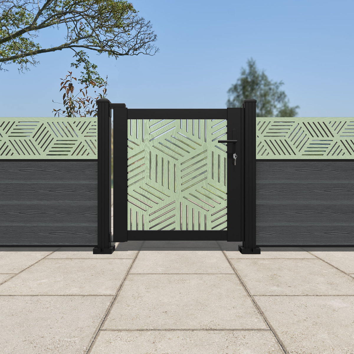 Pair your gate with our eco-friendly composite or aluminium slats for a seamless match to our fencing collections, ensuring a stylish and cohesive look.