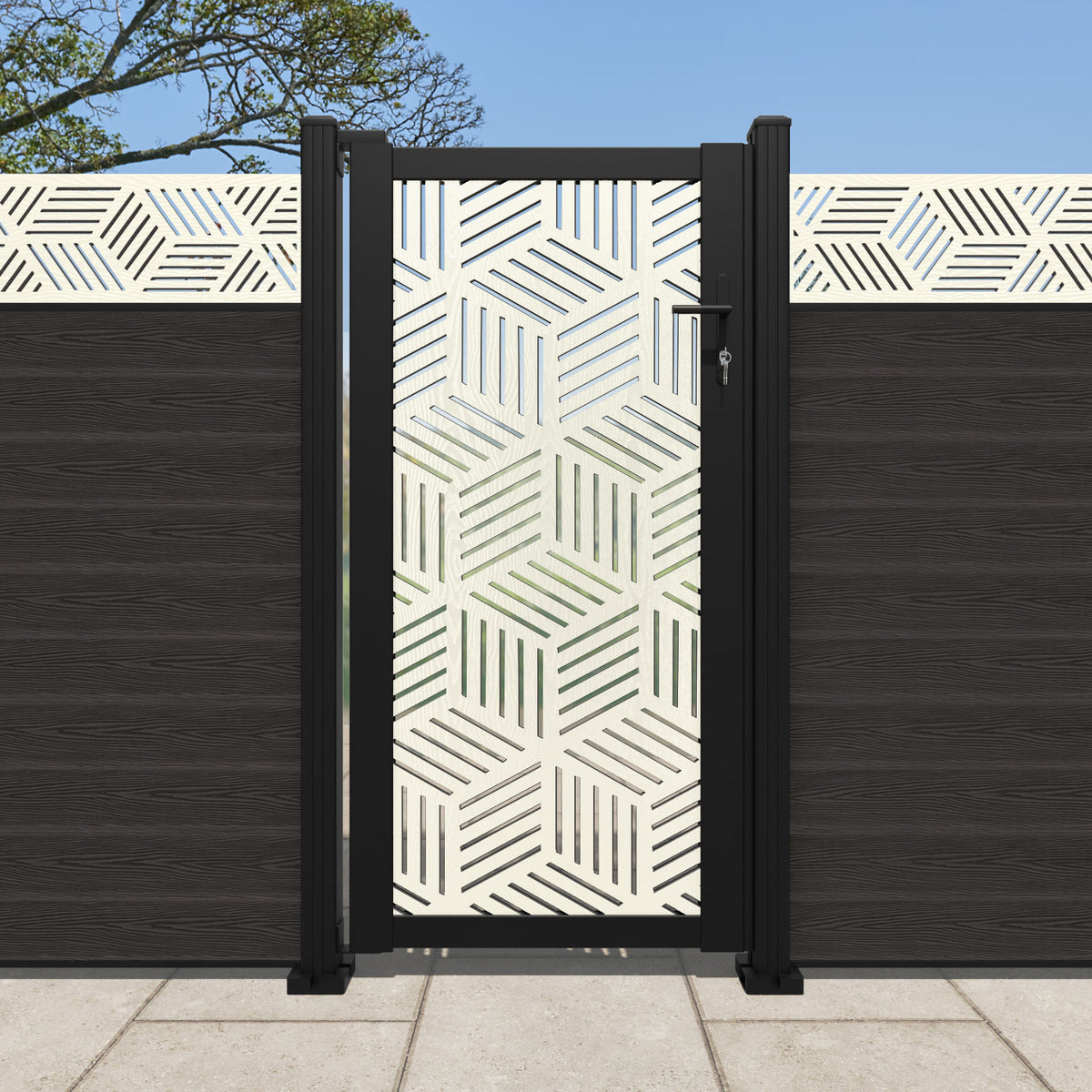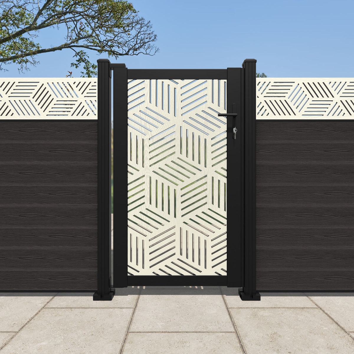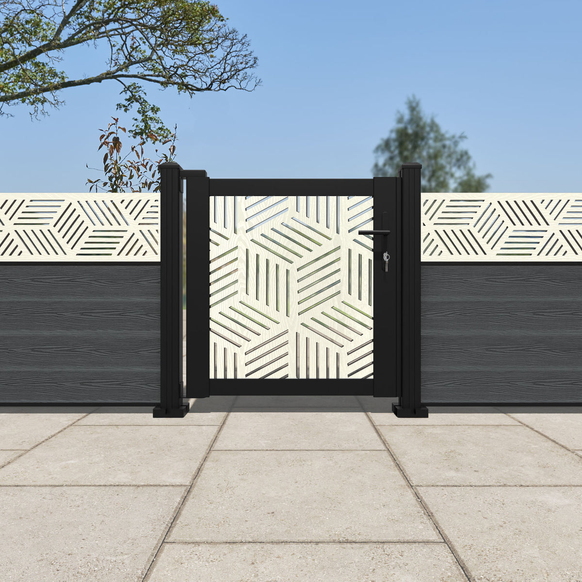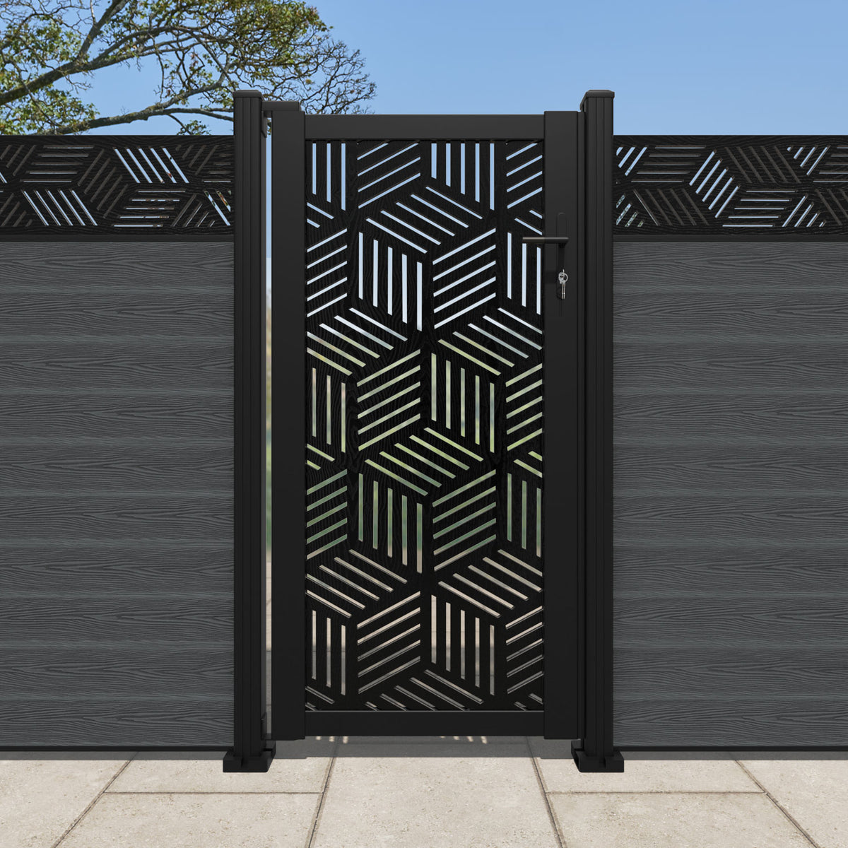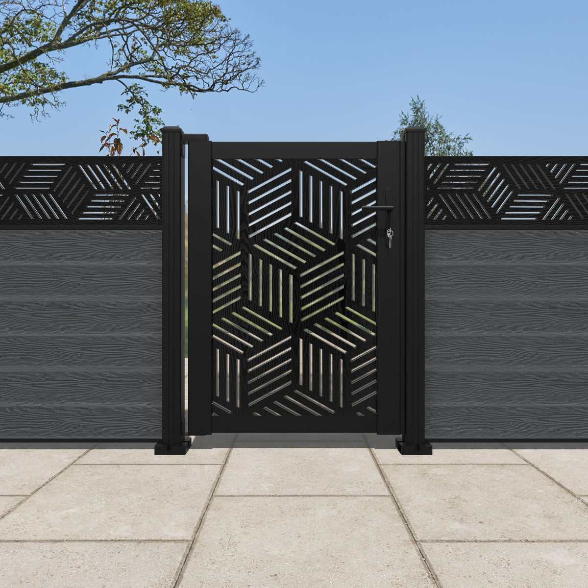 Pair your gate with our eco-friendly composite or aluminium slats for a seamless match to our fencing collections, ensuring a stylish and cohesive look.