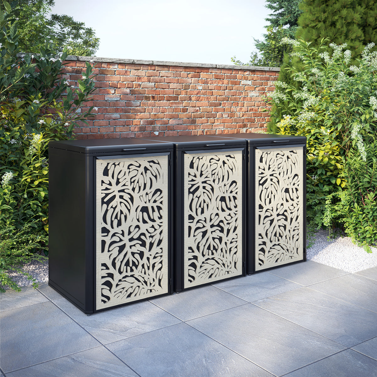 Curva Black 3 Bin Store with Botanic Door Screen