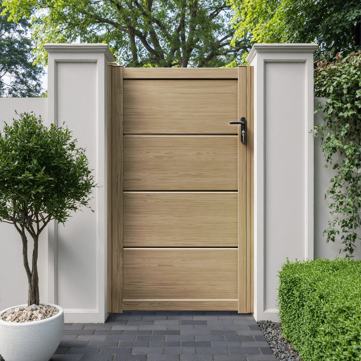 Pair your gate with our eco-friendly composite or aluminium slats for a seamless match to our fencing collections, ensuring a stylish and cohesive look.