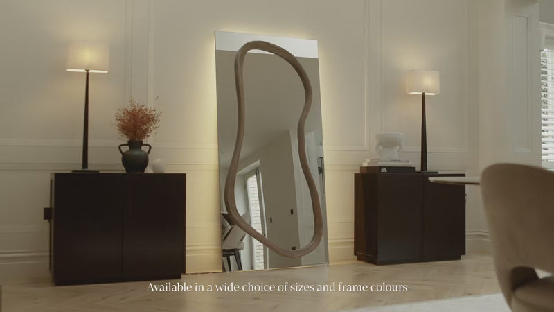 The Eclipse Full-Length Mirror is the ultimate statement piece for luxurious interiors, masterfully combining dramatic scale with a sophisticated layered design. This magnificent mirror features a towering, classic arched glass silhouette that is beautifully overlaid with a striking, free-form sculptural frame. This bold, artistic inner frame appears to float over the main reflective surface, creating an extraordinary sense of opulence, texture, and magnificent three-dimensional depth. Designed to be a captivating focal point, this unique "frame within a frame" transforms any room into an architecturally defined and curated space. You can further enhance its impact by choosing to add integrated LED backlighting for a truly custom and ambient glow that beautifully showcases its organic, nested form.
