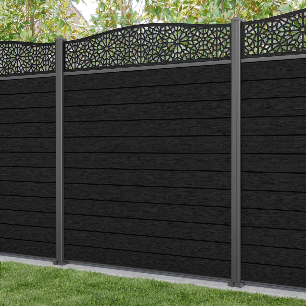 Fusion Alnara Curved Top Fence Panel Black - with our aluminium posts