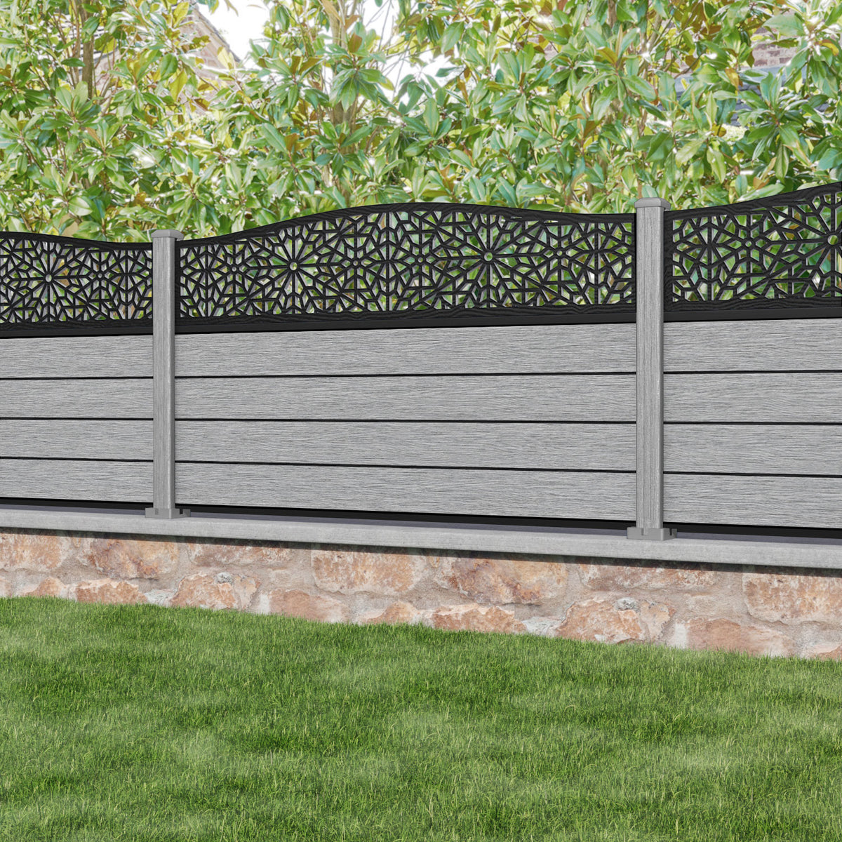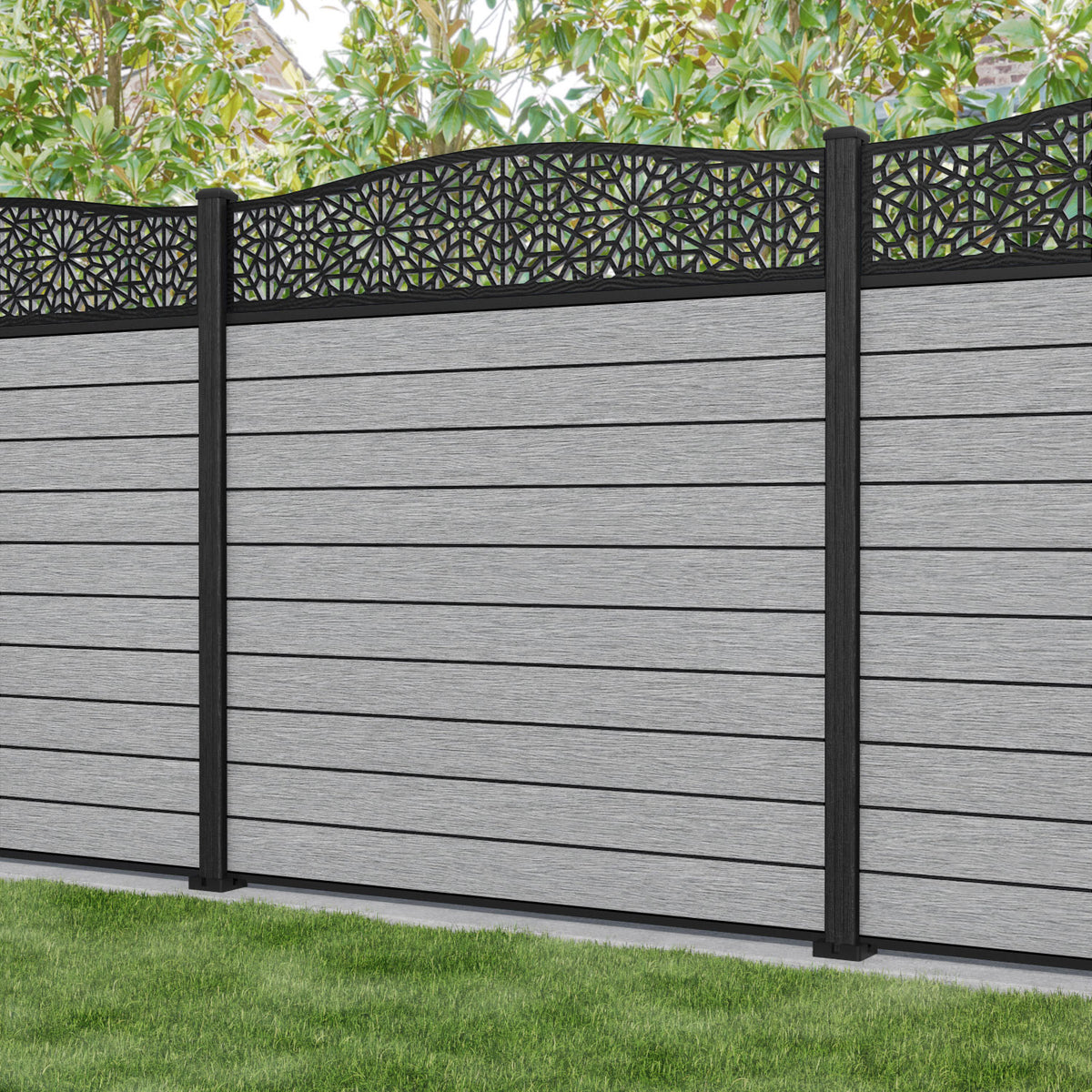 Fusion Alnara Curved Top Fence Panel Light Grey - with our composite posts