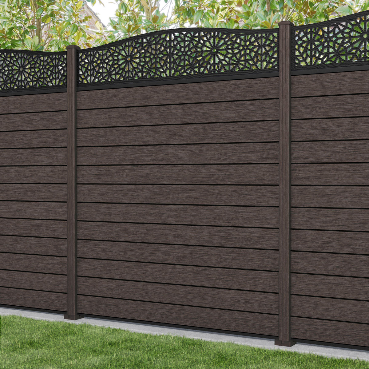 Fusion Alnara Curved Top Fence Panel Mid Brown - with our composite posts