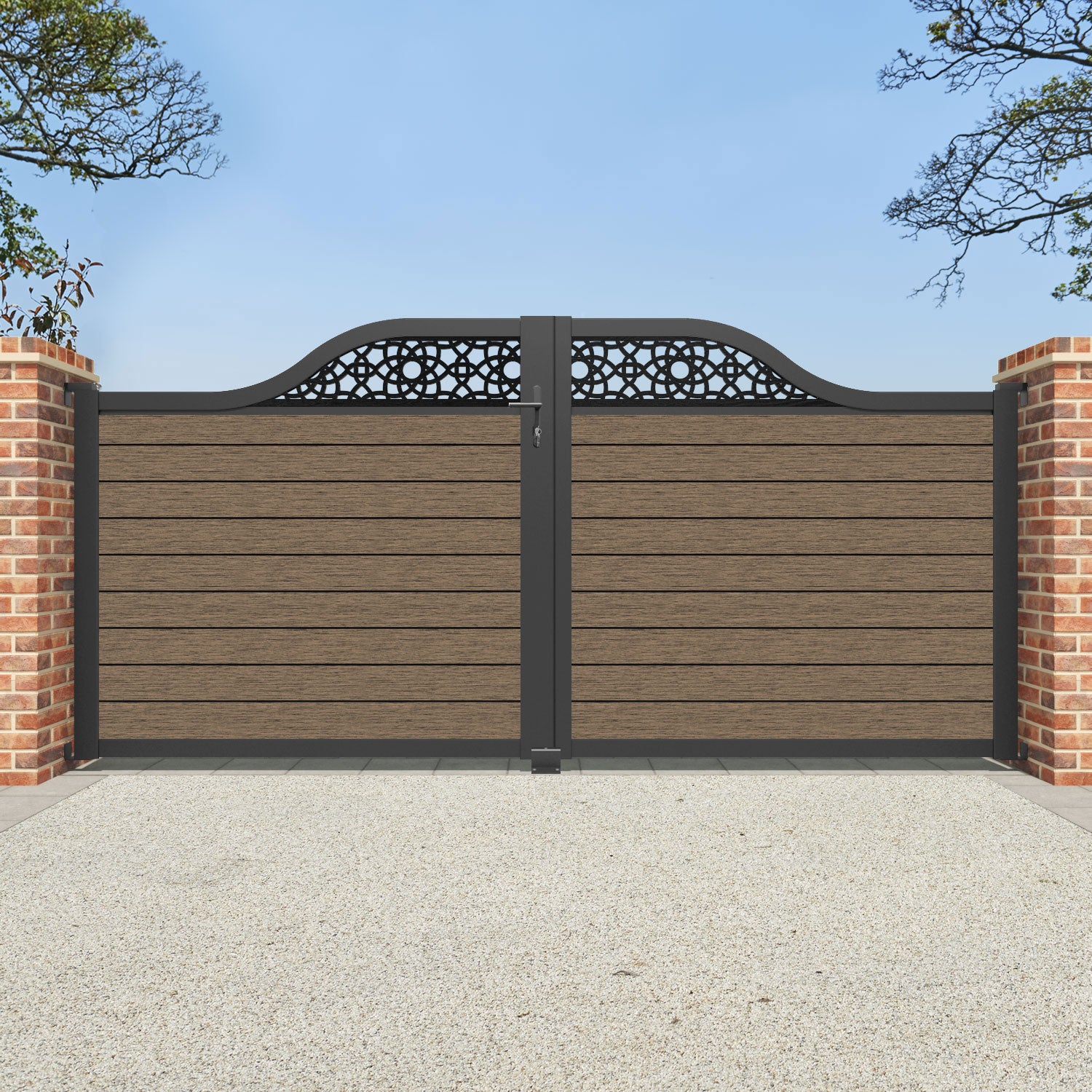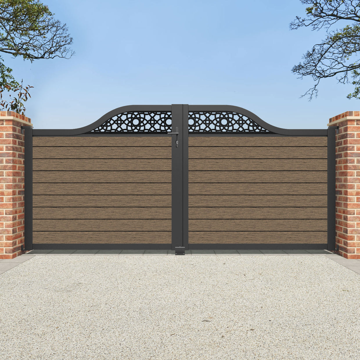Fusion Ambar Curved Top Driveway Gate Teak - Top Screen