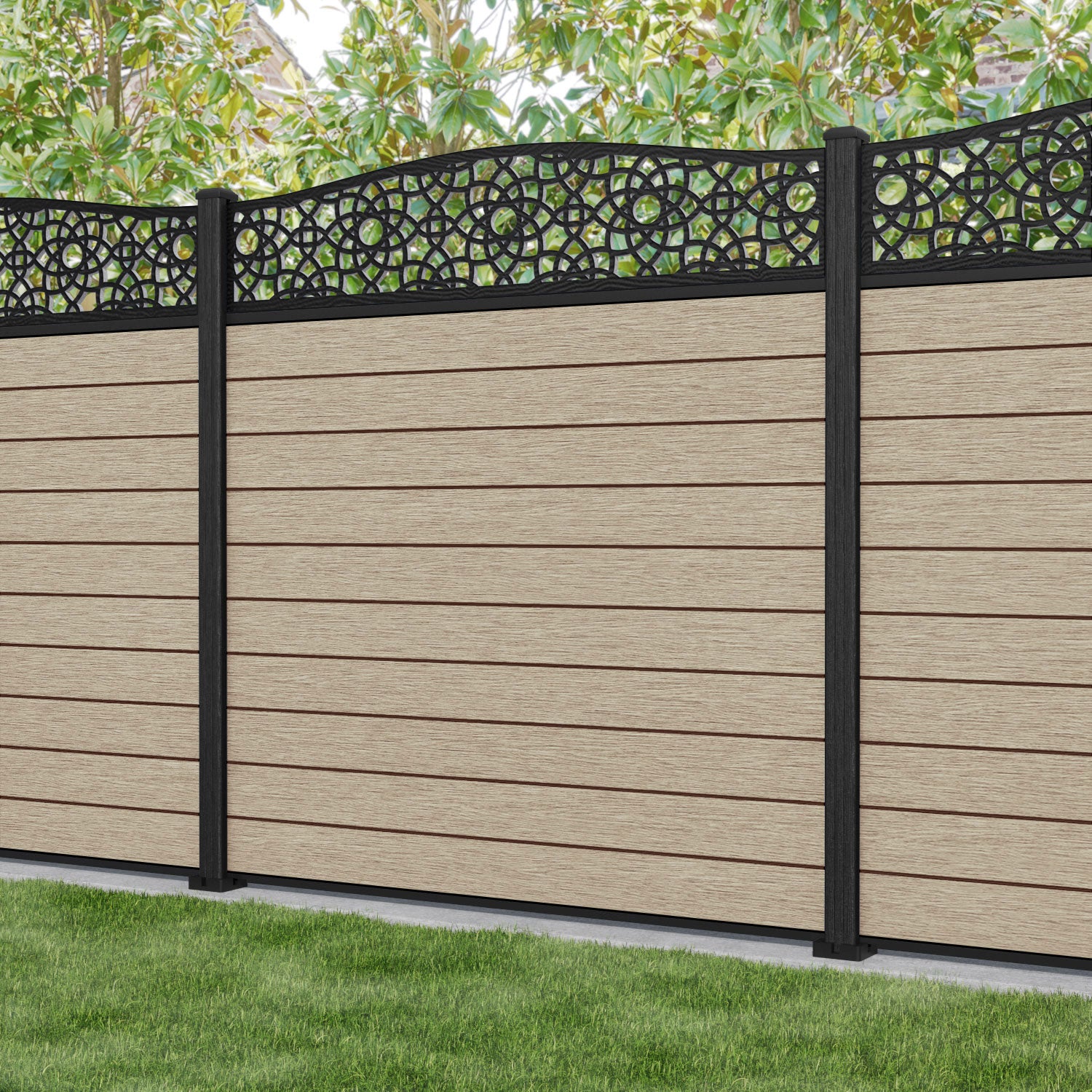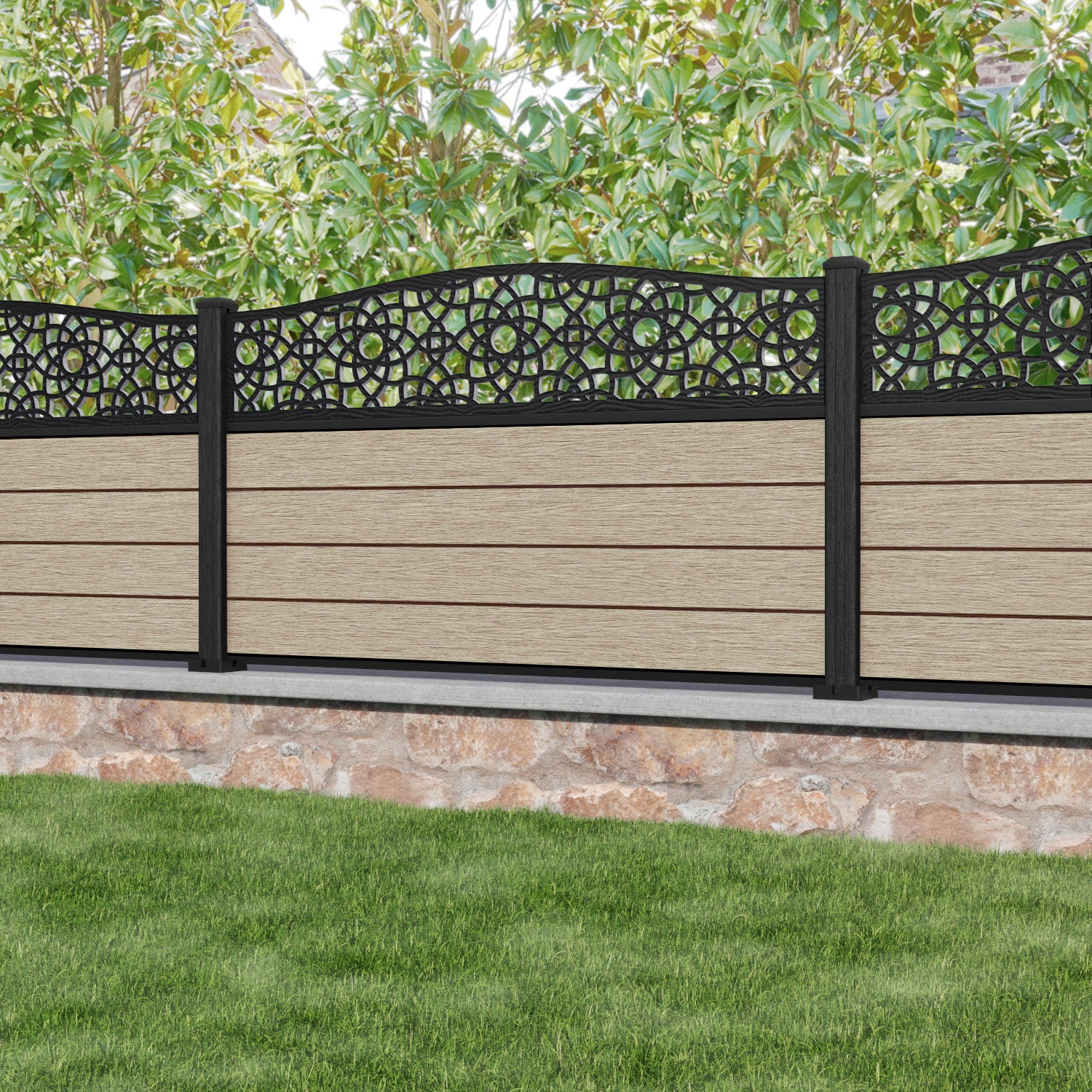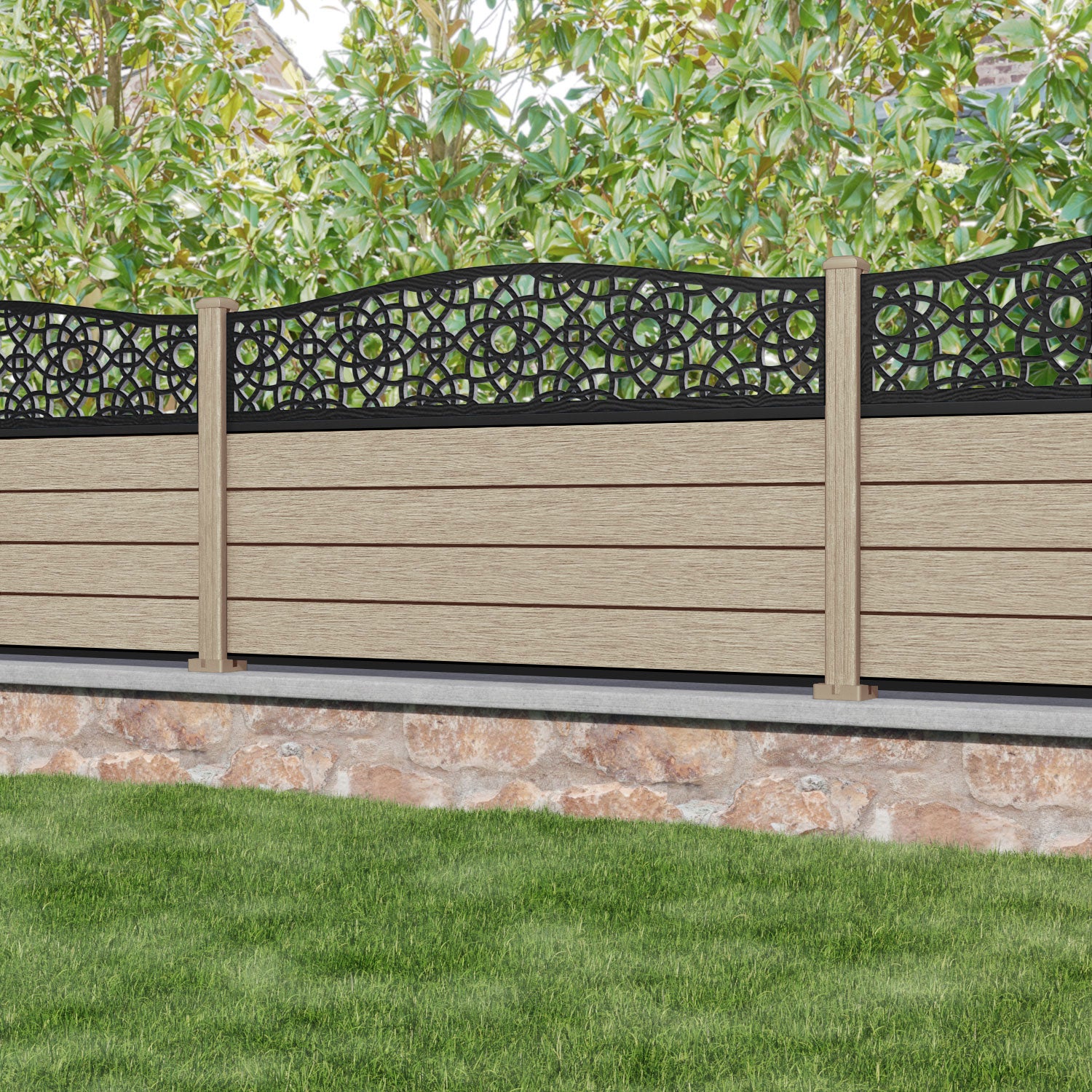 Fusion Ambar Curved Top Fence Panel Light Oak - with our composite posts