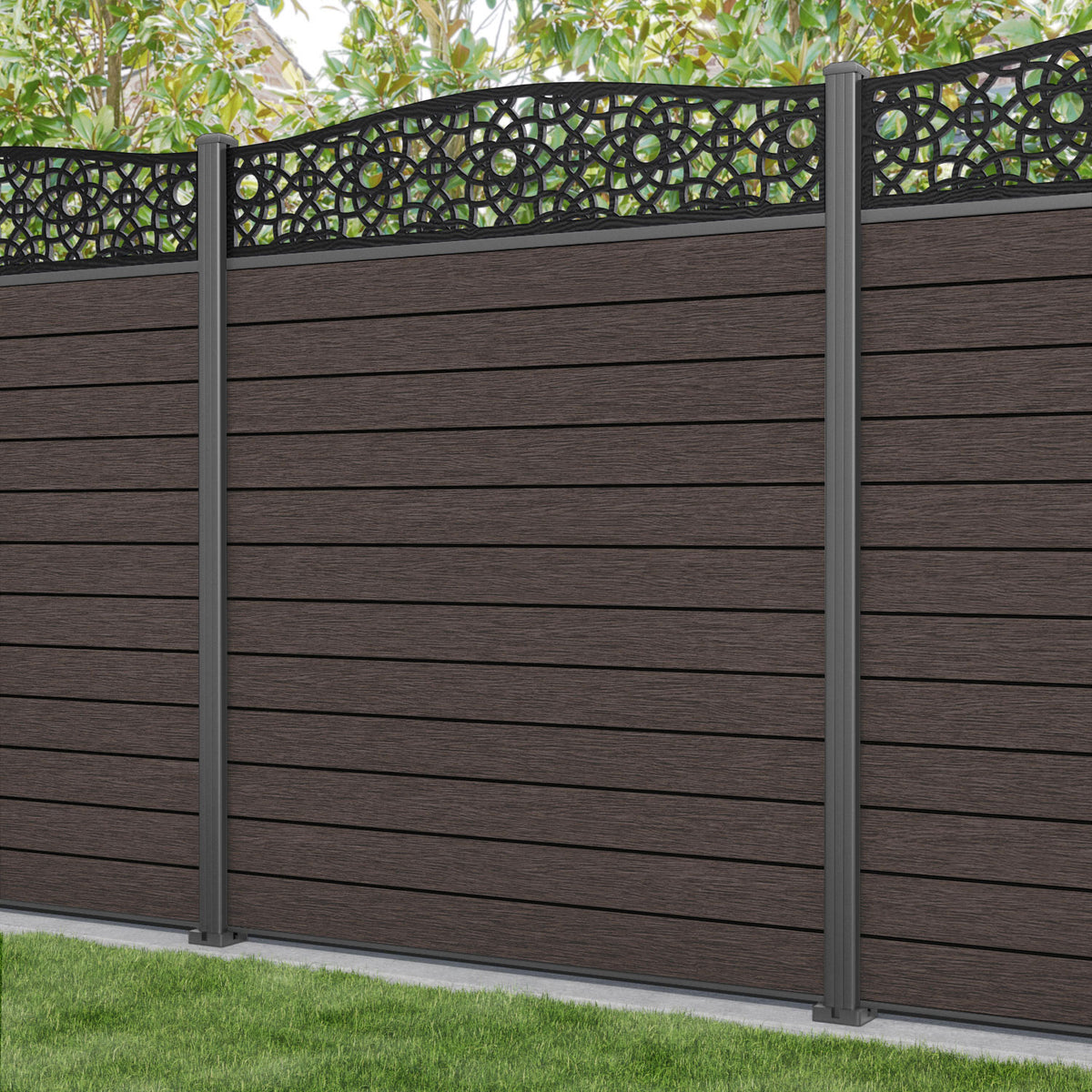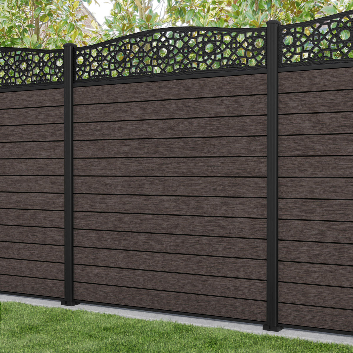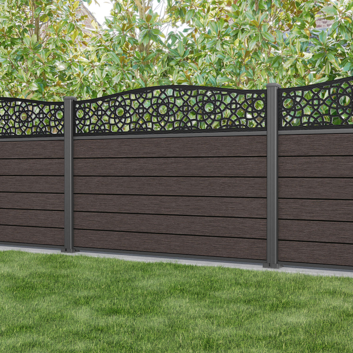 Fusion Ambar Curved Top Fence Panel Mid Brown - with our aluminium posts