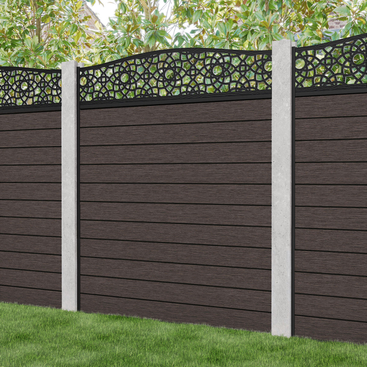 Fusion Ambar Curved Top Fence Panel Mid Brown - for existing concrete posts