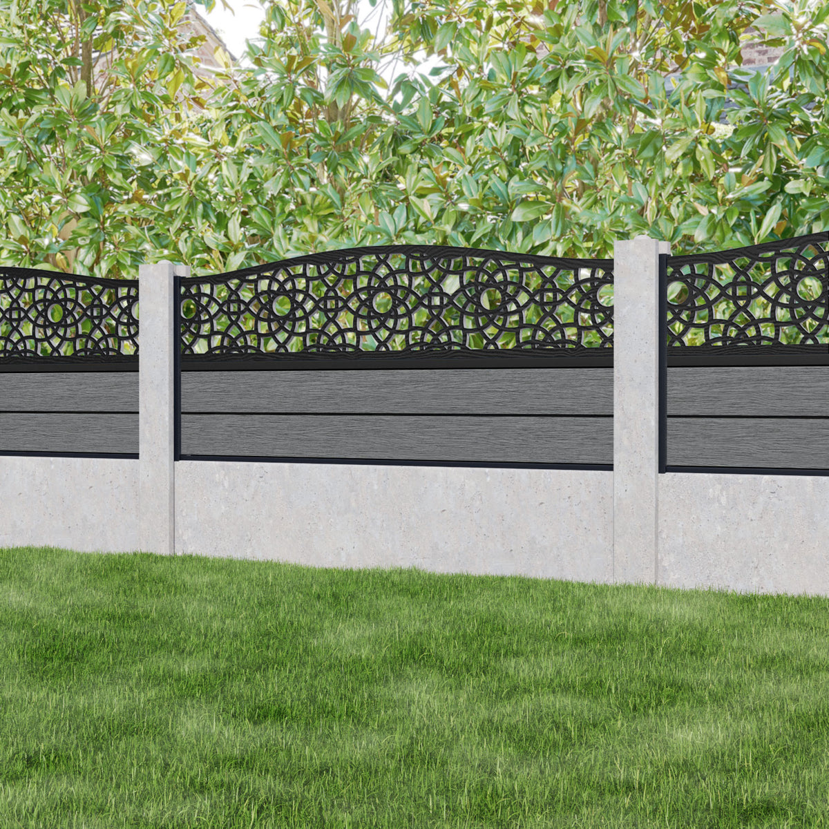 Fusion Ambar Curved Top Fence Panel Mid Grey - for existing concrete posts