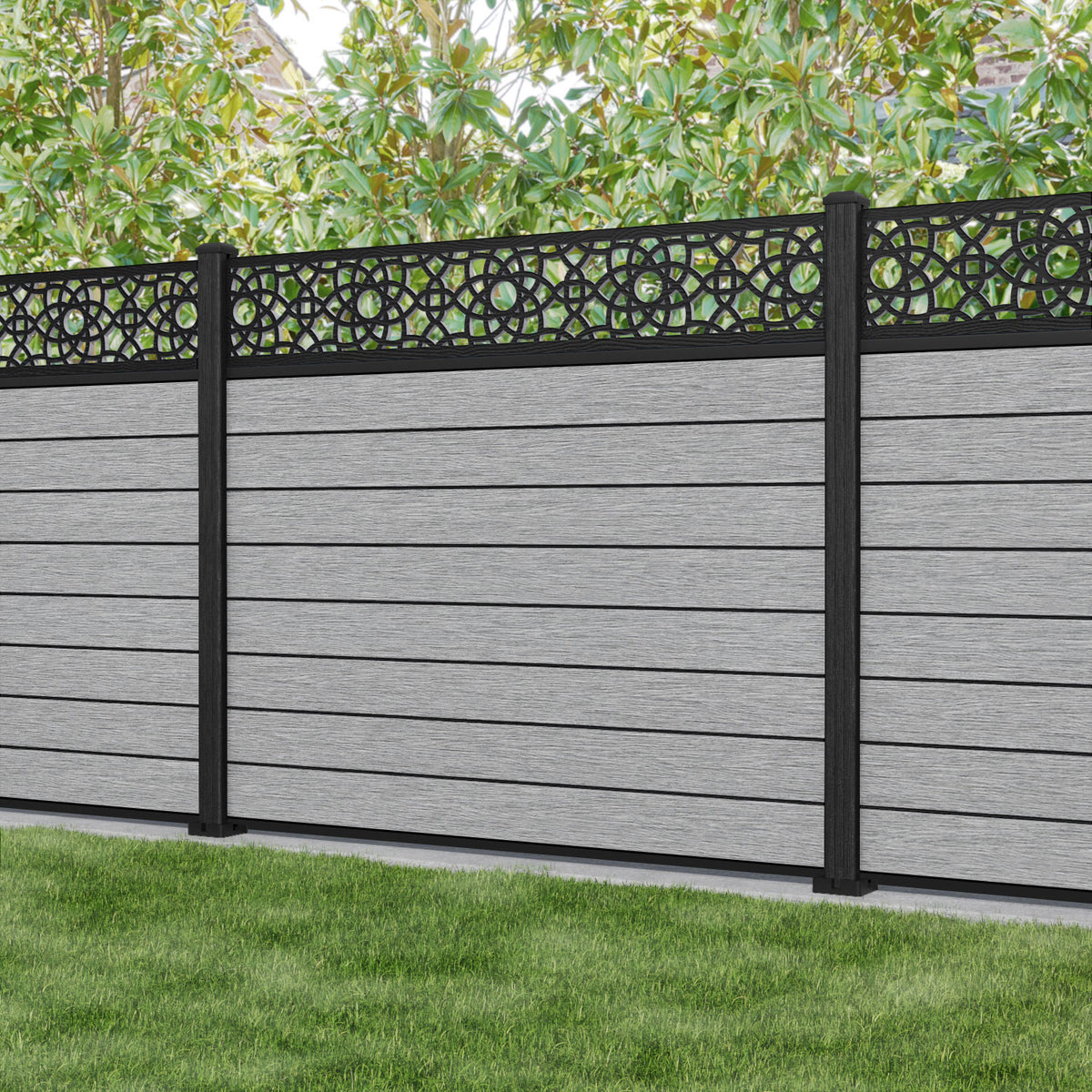 Fusion Ambar Fence Panel Light Grey - with our composite posts